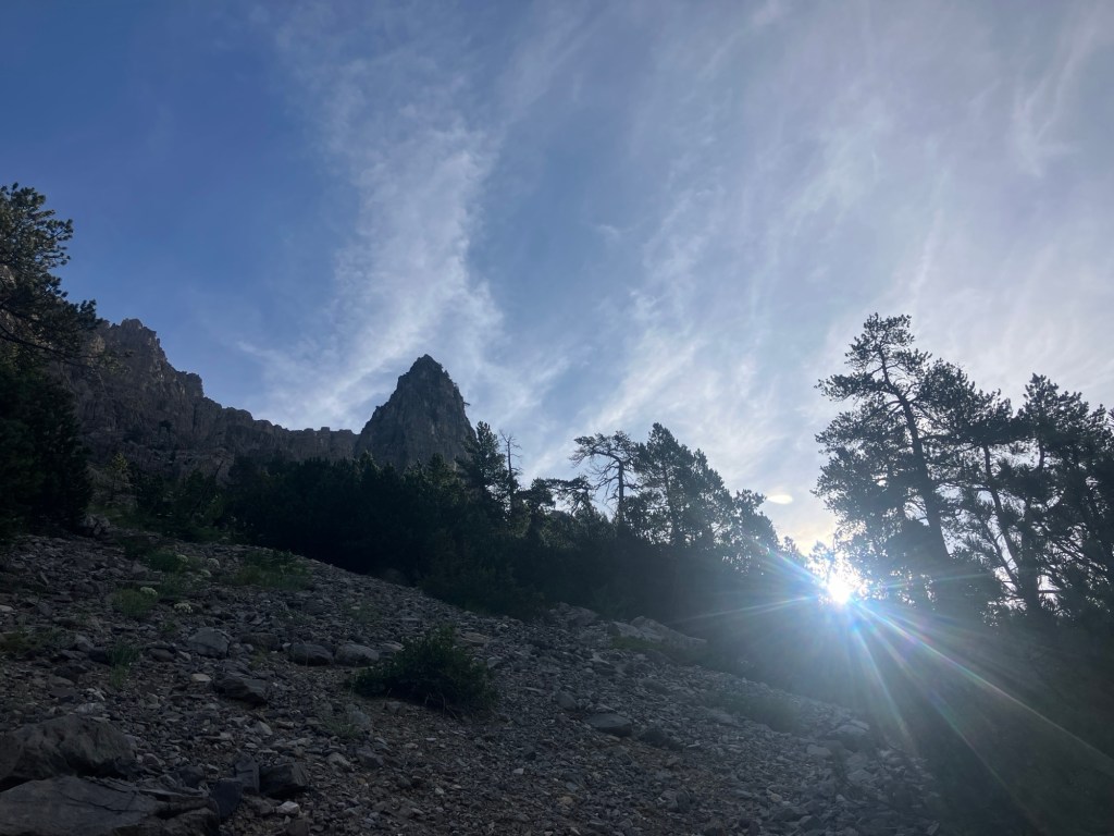 On reaching the shade of the first pine trees, we stopped, threw off our gear and downed the last of our remaining water.