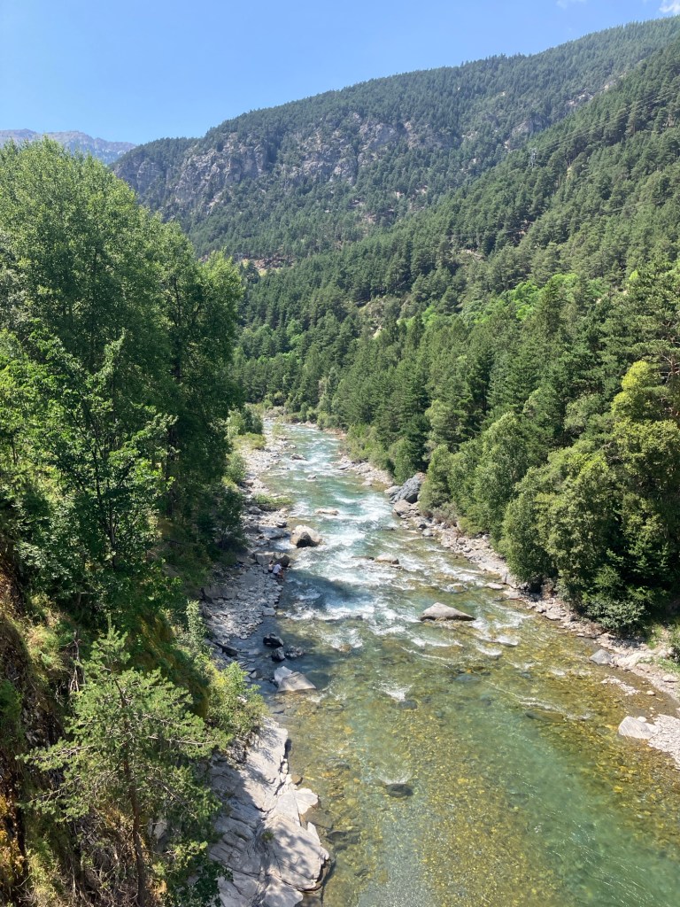The Guil Gorge is spectacular, but in the cool of the morning, it felt intimidating with the roar of the rapids and the shadowy cliffs above. Having translated the guidebook, it read that there had been some rock fall in the area. Even where we parked the car up, the layby was littered with freshly fallen rocks, which didn’t really inspire confidence. To get to the cliffs, you have to clip onto a wire and pull yourself across the rapids above the river level on a Tyrolean traverse (just visible in the photo above). It looked super exciting, except for the fact that fresh rockfalls had wiped away the path and possibly one of the wires? Even the layby we stood in had several car sized boulders and fresh rubble that looked like they’d been recently deposited there from somewhere up above. Although the climbs looked okay on the other river bank, we both got the feeling that this wasn’t a place to hang about, so returned to the car and moved onto Plan B!