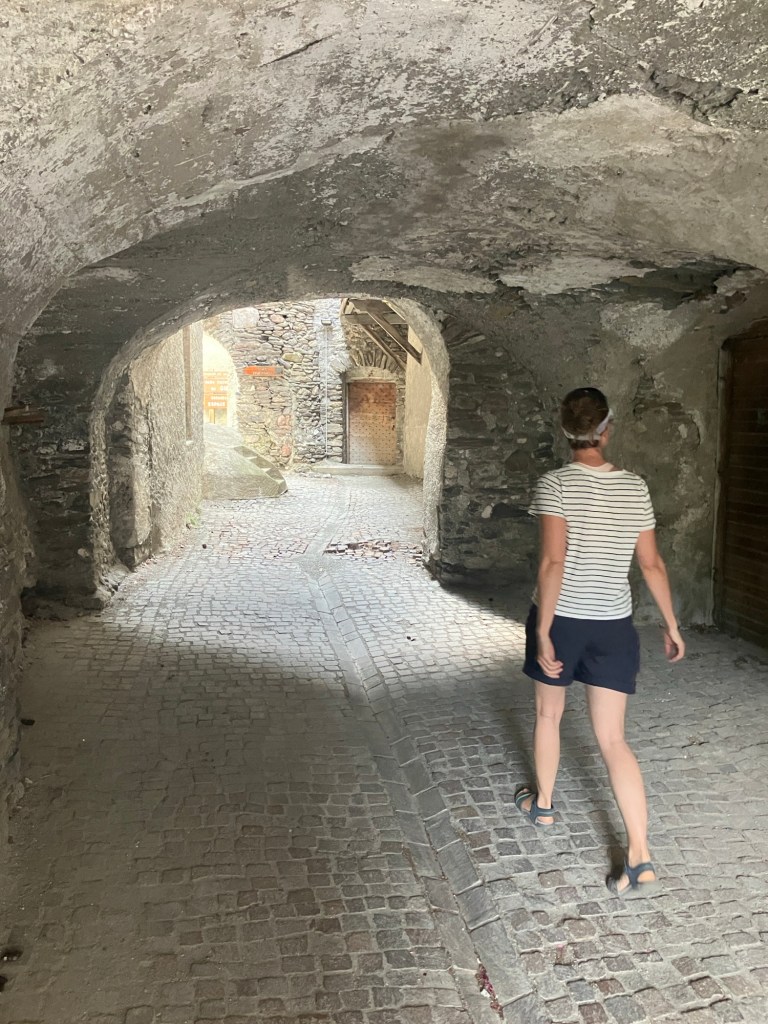 After the mental and physical exertion involved with our big climb the other day, we enjoyed a real ‘holiday morning’ at nearby Mt Dauphin. The old fort town is in walking distance of our chalet, so after waking up naturally, we threw on some clothes, walked over in the cool of the day and got established on the shady terrace of Le Glacier Bleu cafe on in the town square. They’d just opened and the whole village was peacefully quiet. With coffee and croissants and no rush to be anywhere or do anything, we enjoyed a wonderful few hours shooting the breeze together and watching the village wake up.