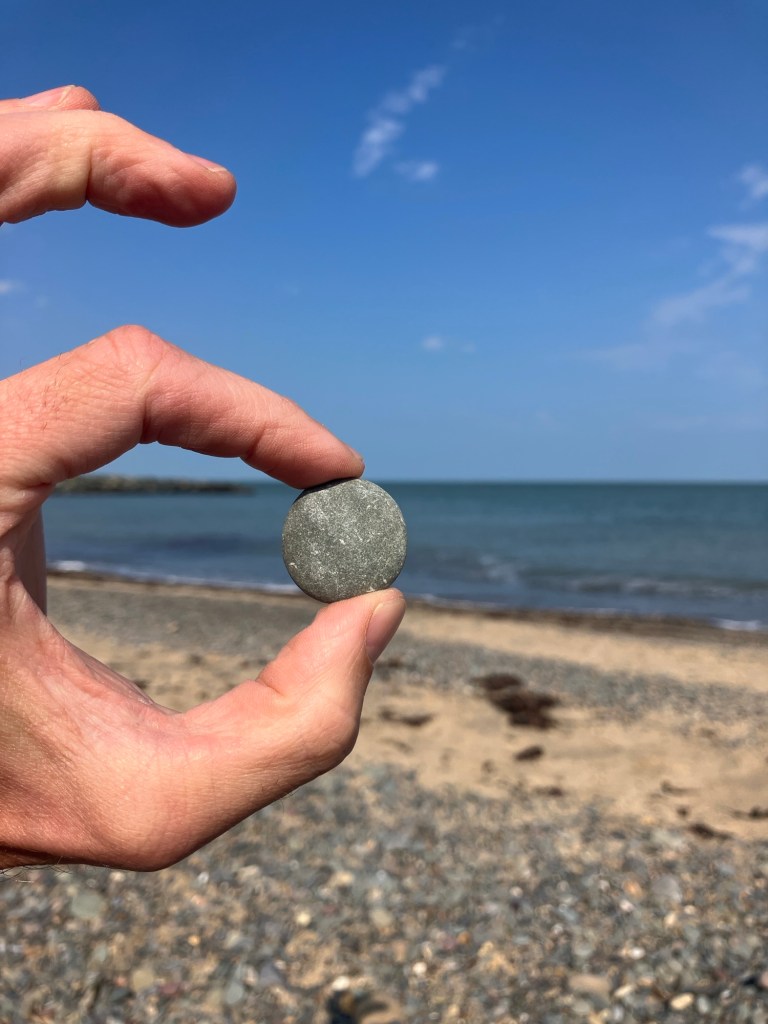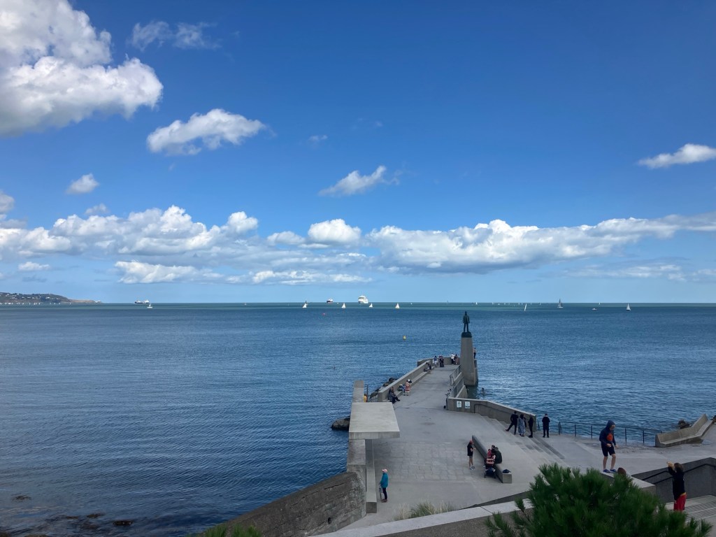 We almost stopped at a great looking high tide swimming spot, but continued on to Bray, where we dropped our bags at Barney’s then continued down to the beach where we met Sinead. Also had a good game of hunt the pebble with Sam.