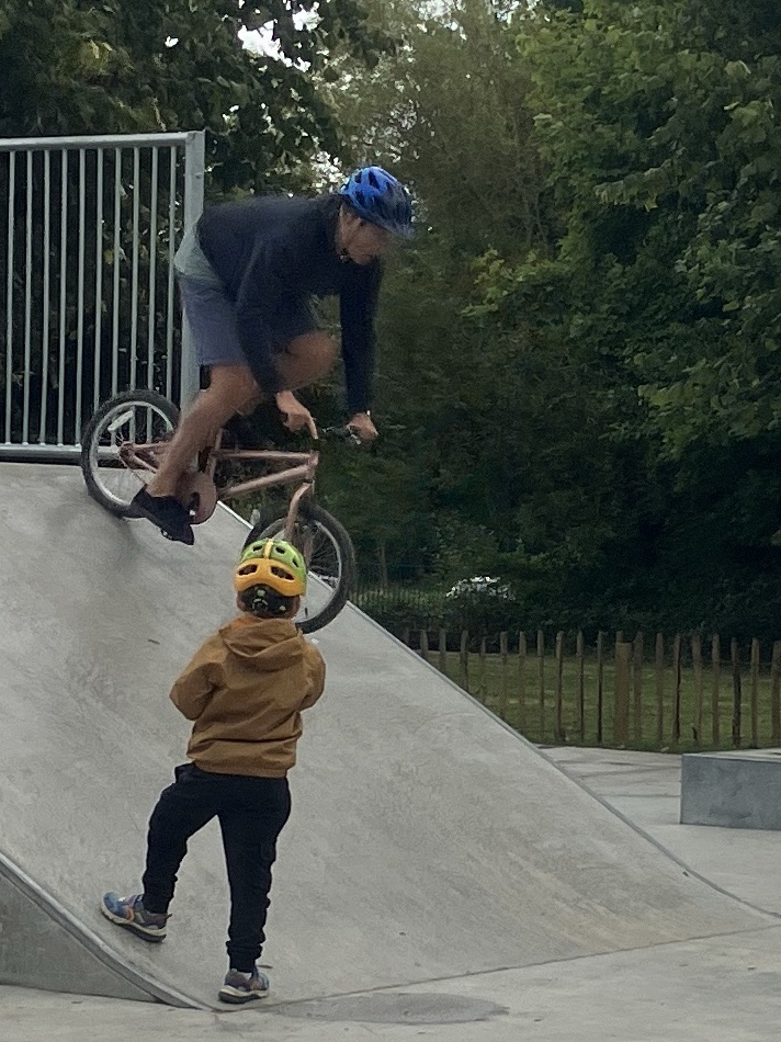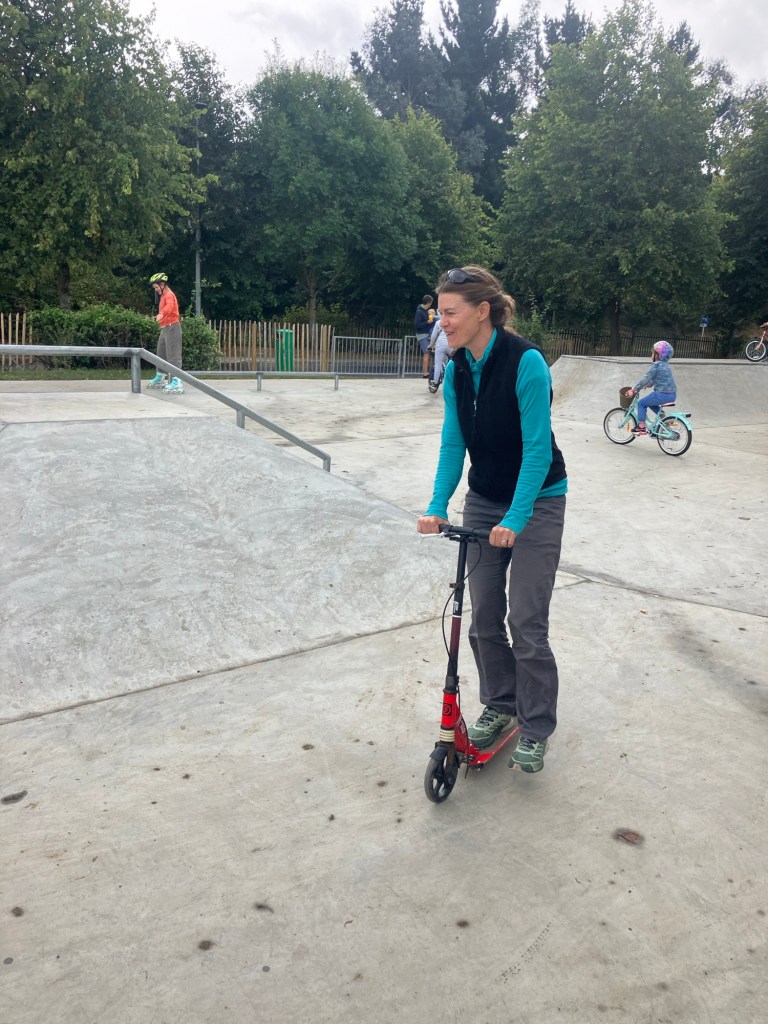 After arriving in Bray, we swapped bikes for scooters on Sunday to join the Crampton skate team at the new skate park. Lots of fun for the old as well as younger members of our new gang.