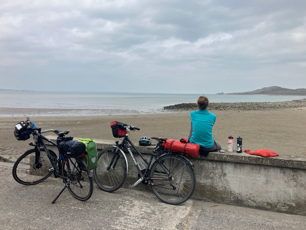 Late in the afternoon after a final team swim in the sea at Bray Beach, we packed up our panniers and set off north back towards Dublin under an ever darkening sky. We had a few drops of rain, but nothing to worry about and the temperatures remained pleasantly warm.