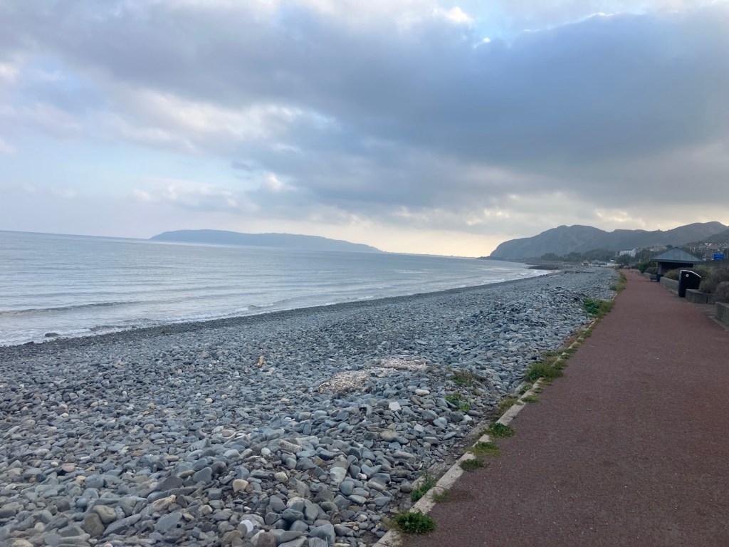 With a day of indoor meetings ahead of me, I decided on an early start and use the bike to travel along the coast to Llandudno. The sun was just coming up over the mountains as I set off from The Cottage into the cool of the morning.