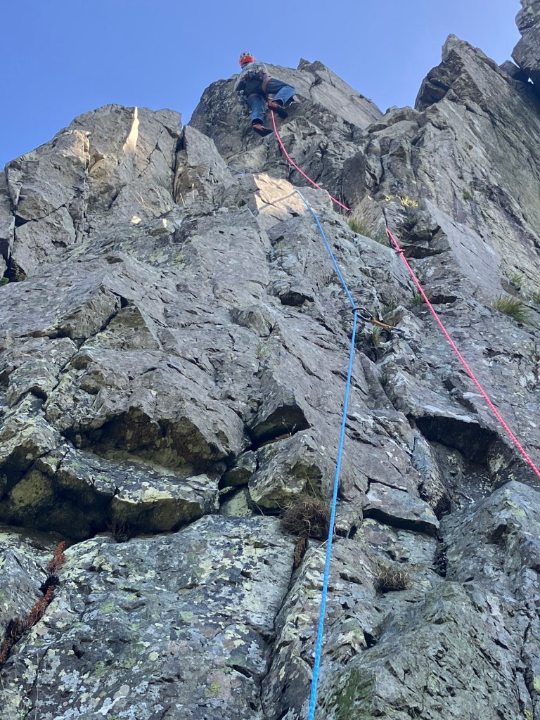 John was on top form and itching to climb as many steep routes as possible! We set a target of climbing as many ‘starred’ routes as possible during the day.