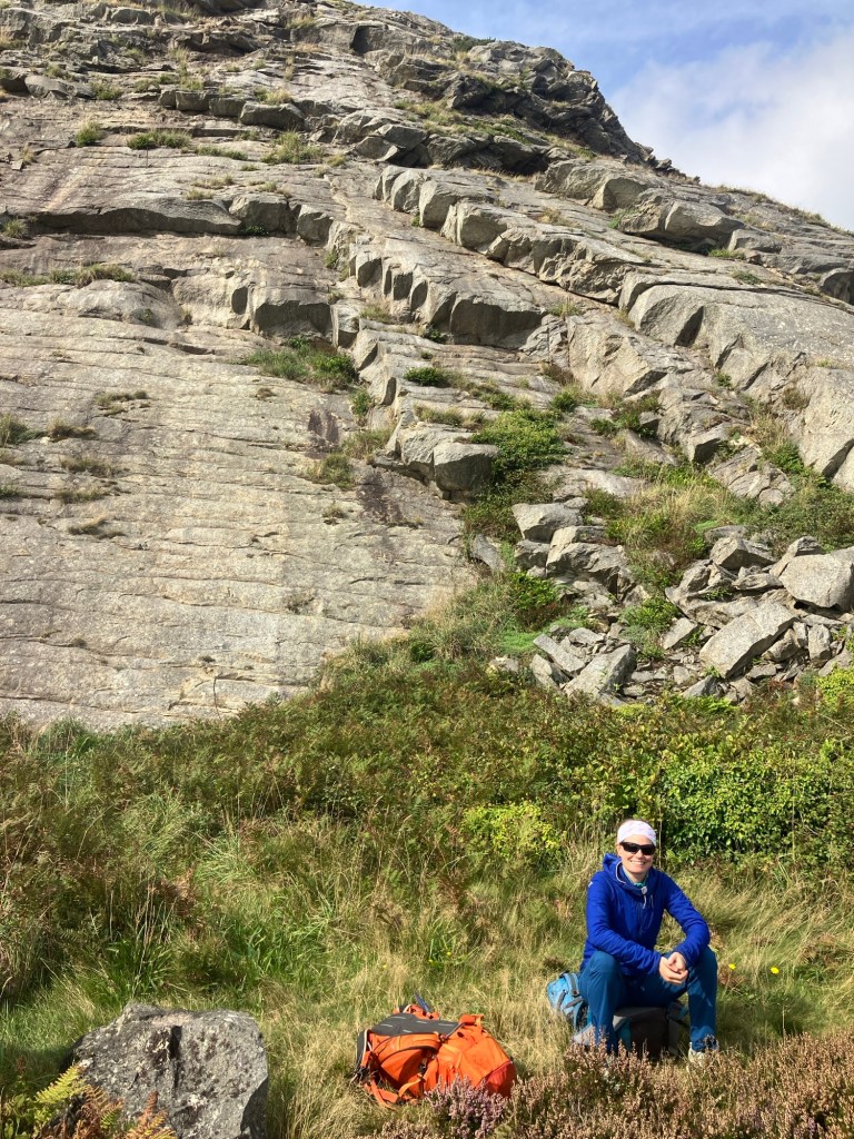 It was a beautiful warm afternoon – we’d chosen the crag as it was sheltered from the north westerly wind and would be in the sun. As such, it also made for a good picnic spot too!