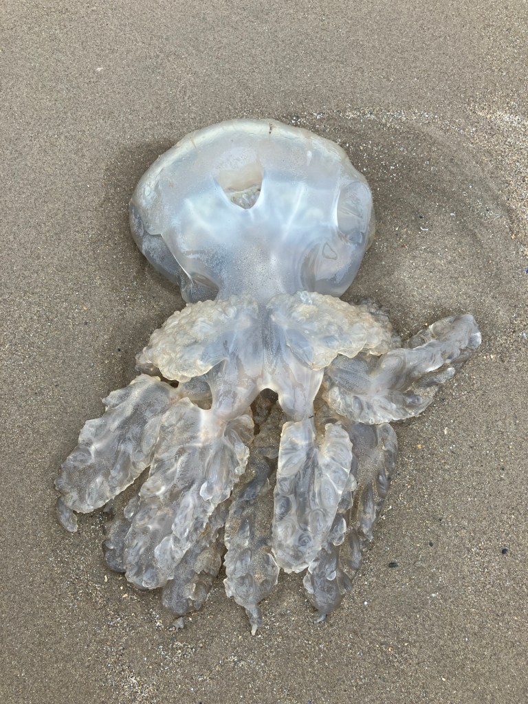We had taken a big picnic to enjoy once we’d dried off and luckily we only noticed the enormous jellyfish once we’d dried off!