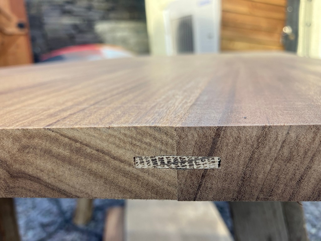 More cuts, big clamps, some glue and oak strips to make the tongue and groove joint, followed by a lot of sanding and it began to look like we might be ready to go for the big bits.