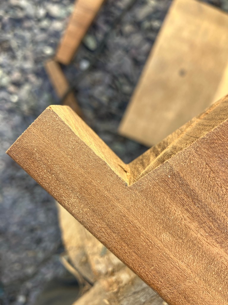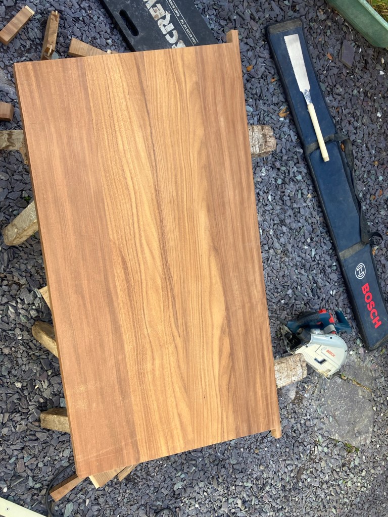 A long time ago, a large Afrormosia tree was felled in the forests of central or western Africa. Somehow (and I’d love to know the full story here), it was transported to the UK, presumably via a sawmill along this great journey, where it came to rest in Northamptonshire, as a solid bannister rail in a newly built shopping centre. Some years later, the shopping centre underwent a major refurb and the bannisters that had been assisting shoppers, along with a great deal of other previously rather expensive building materials, were condemned to live out their days, stocking the local land-fill site. Even back in the ‘days of plenty’ before recycling and cheaper substitute materials became a thing, Dad, who was working on the refurb project, recognised that these were ‘good bits of wood’ that could be re-used and should be kept. Certainly, as was his trademark catch phrase, they would probably ‘come in handy one day’. And so it was, that a lorry load of broken up stair bannisters, ended up in his possession. And they certainly did come in handy as he and Mom built and furnished their home.