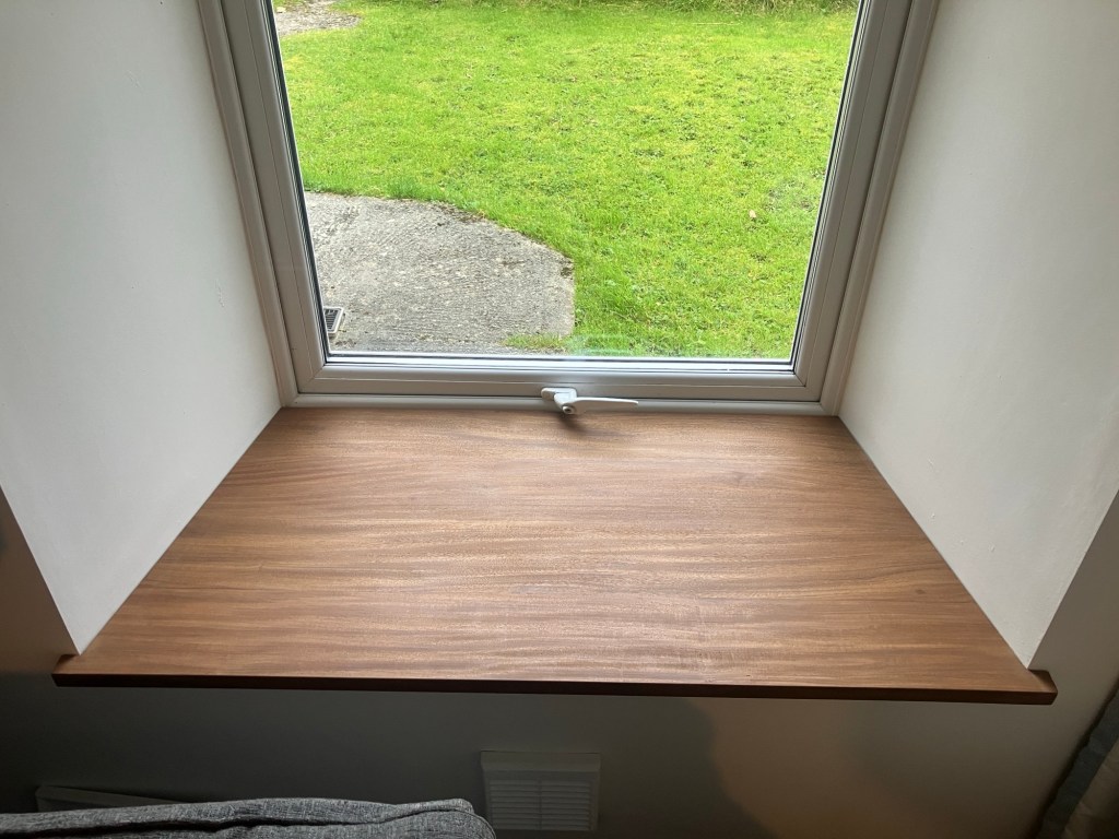 With the wood looking smooth and grooved, it was loaded once again into the van and taken up to The Cottage. Rather than jump straight in, it seemed prudent to try a ‘test piece first, to check the technique for joining the lengths together. The walls of The Cottage are over half a metre think, so a window sill actually requires quite a lot of timber!