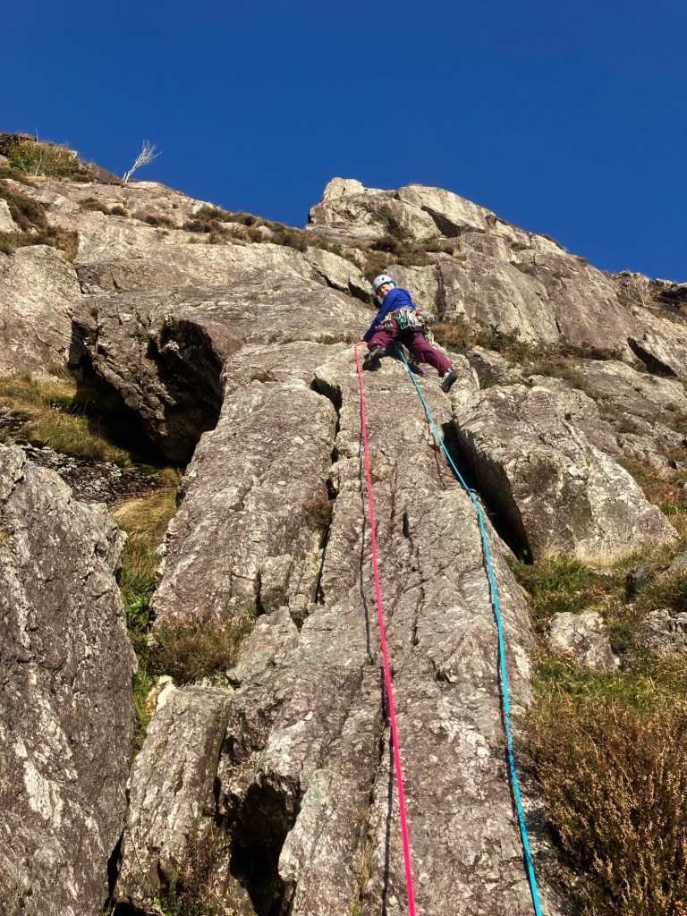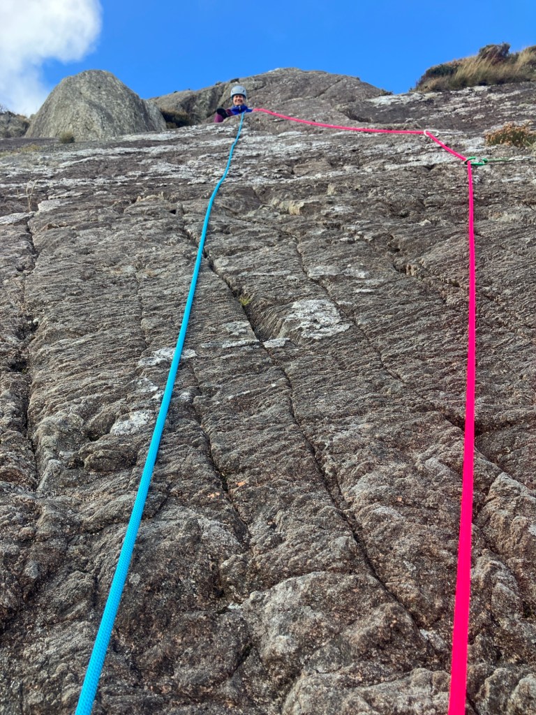 We climbed several routes, by linking pitches together. This gave some satisfyingly long climbs, of 40m and meant that our rope work had to be good to avoid any ‘drag’.