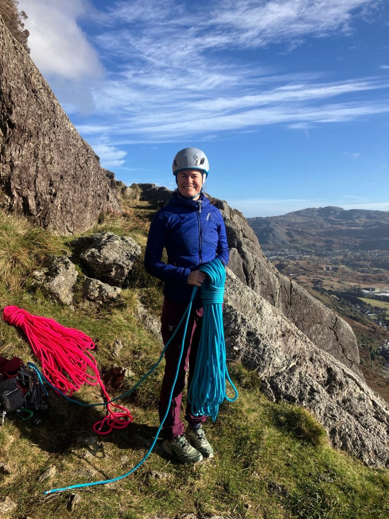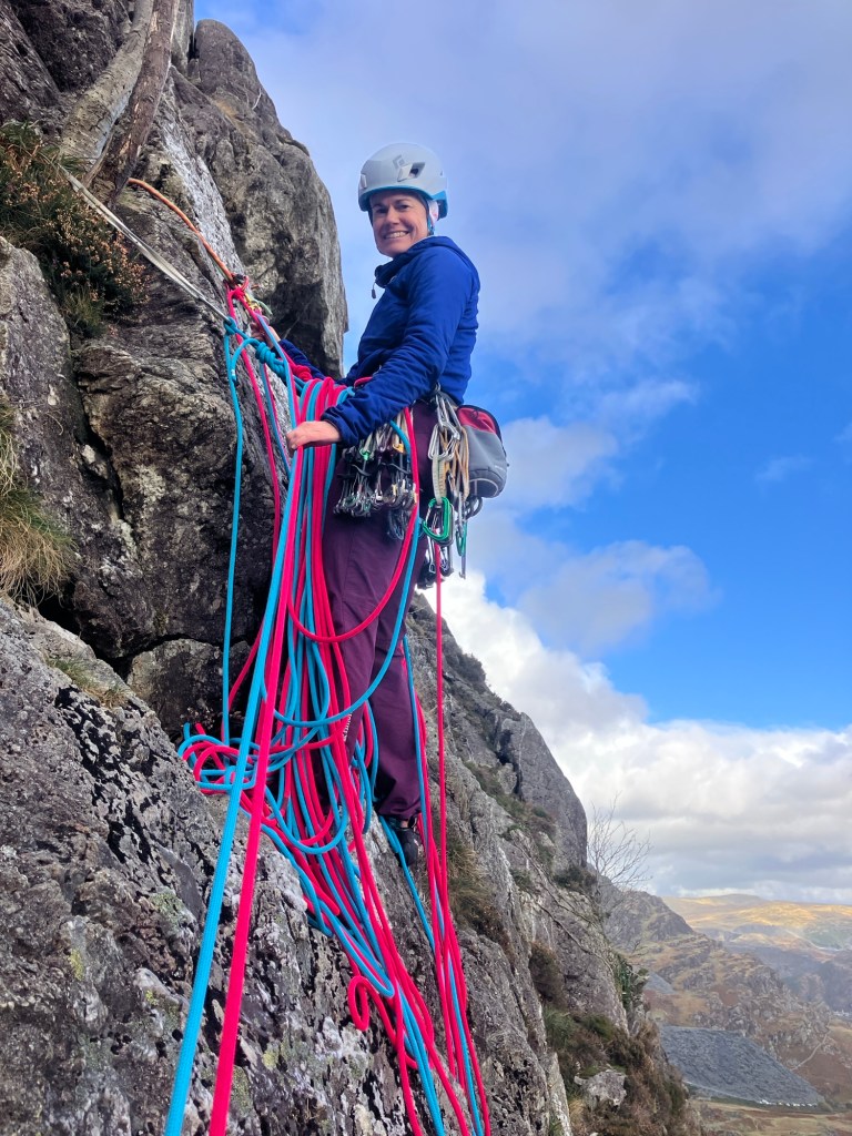 There was an abseil station half way up our final route, so when the wind picked up and things started to cloud over and get cold, we made a very convenient descent back to the bags and returned to the van for a brew.