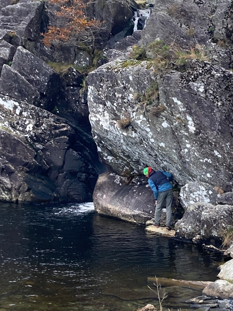 Last week a friend had messaged me to ask if I’d climbed a DWS (Deep Water Solo), a short walk up the path from where we’d parked. Before we left, we walked up to have a look. The water was certainly deep and the traverse looked exciting, but I couldn’t bring myself to commit to going around the corner to the waterfall as it looked trick – and wet! Maybe next time…