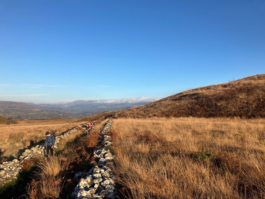 Although I’ve been down this way plenty of times before, we took our student groups on a different ‘high level’ route that traversed under the side of Cader Idris, on paths that I’d not been on before. The summits were encased in cloud banks, but we had plenty of warm sunshine on us.