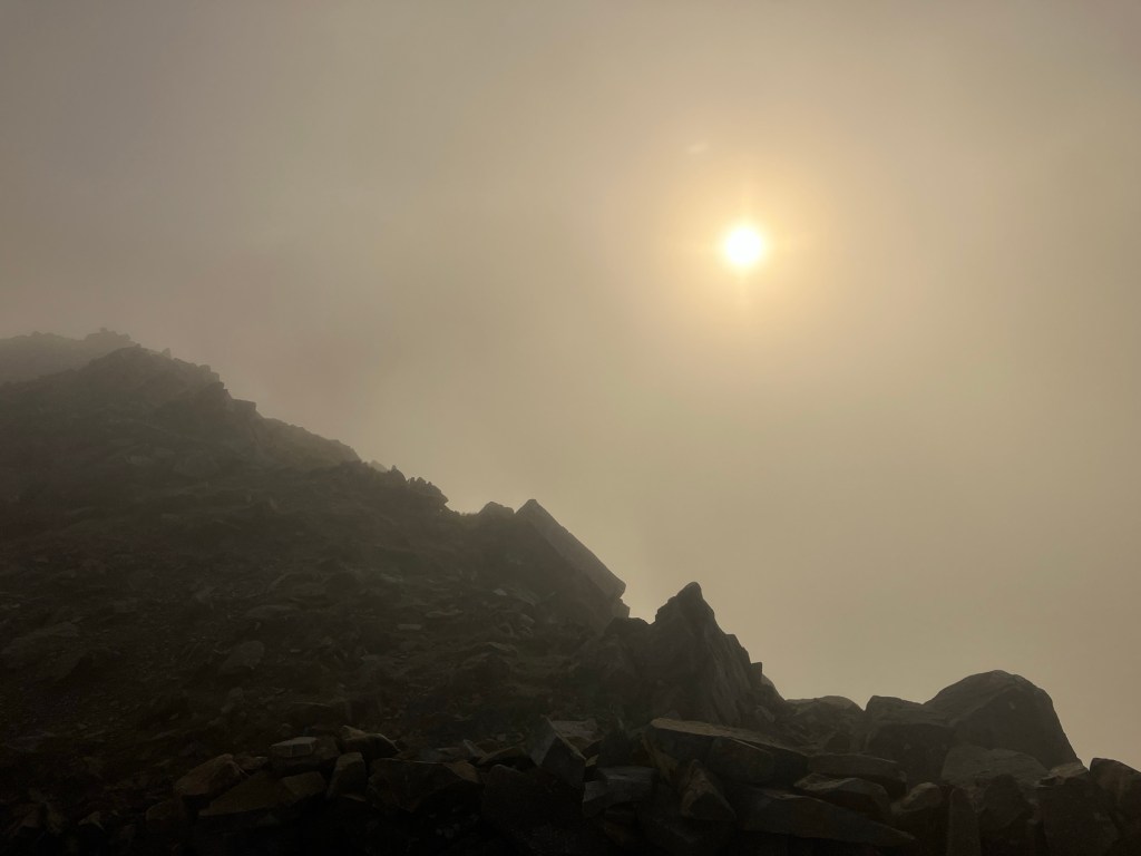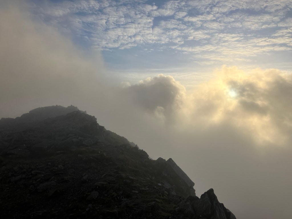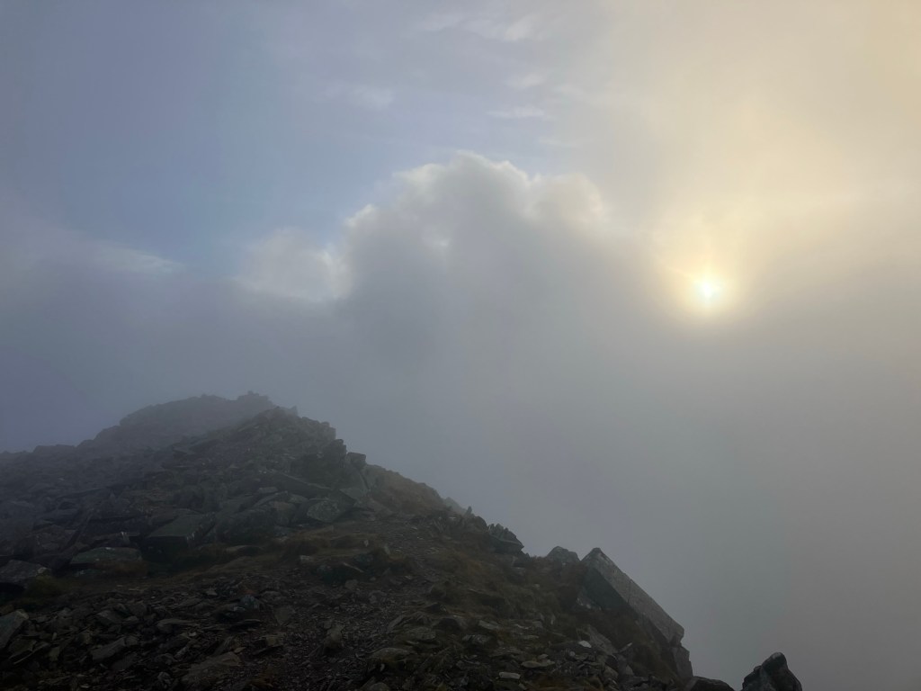 It was late in the afternoon, after a morning of admin, when we decided to get out into the hills. The sun felt low as we walked/jogged our way up to a mist covered Carnedd y Filiast.