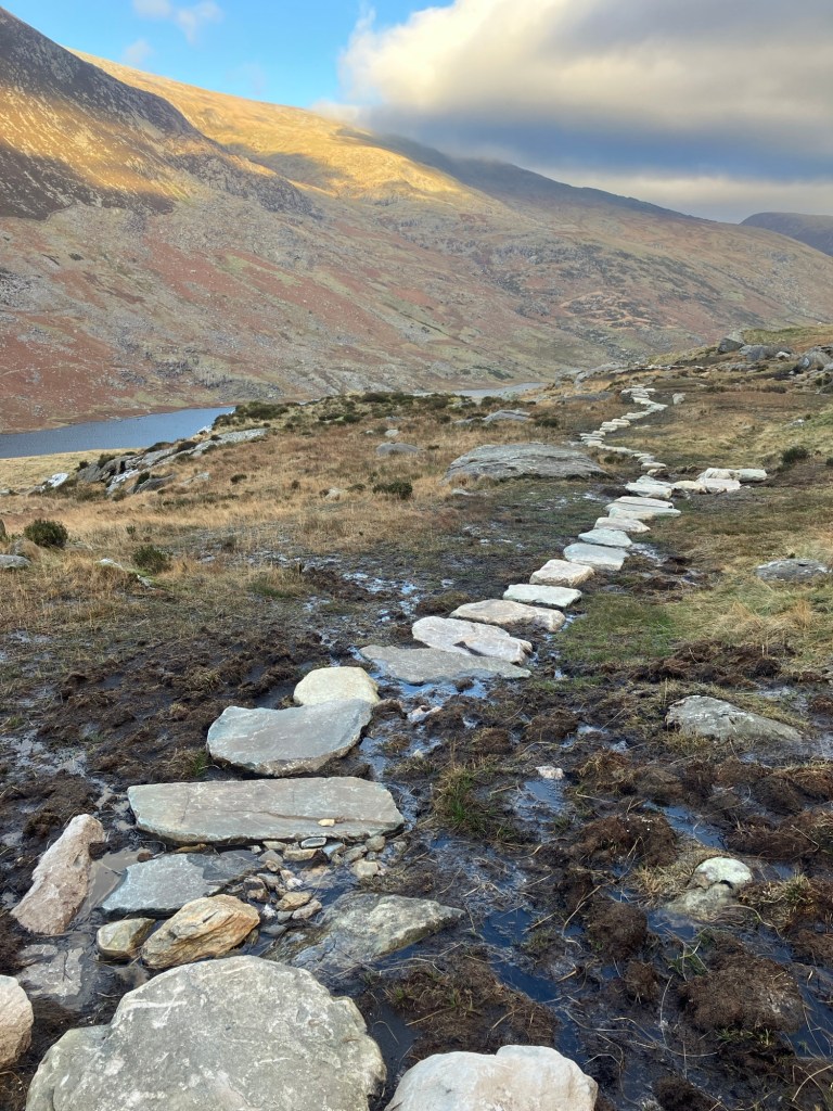 At the base of Bochlwyd Buttress, we found a brand new path! We had anticipated getting a bit we and muddy here, but the new stepping stones now lead all the way down to the A5!