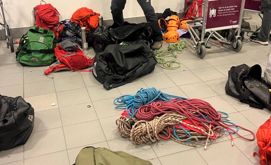 We took over a corner of the airport and re-packed all the gear to even out the weight and ensure no kit was lost, before checking the bags in. There were only machines for this process and one very stressed member of airport staff, who did her best to get our bags tagged, after the new machines inevitably didn’t work properly! An hour and a half in a queue was a bit of a shame, but we’d all enjoyed a big pizza meal first, so were at least not hungry as well as tired!