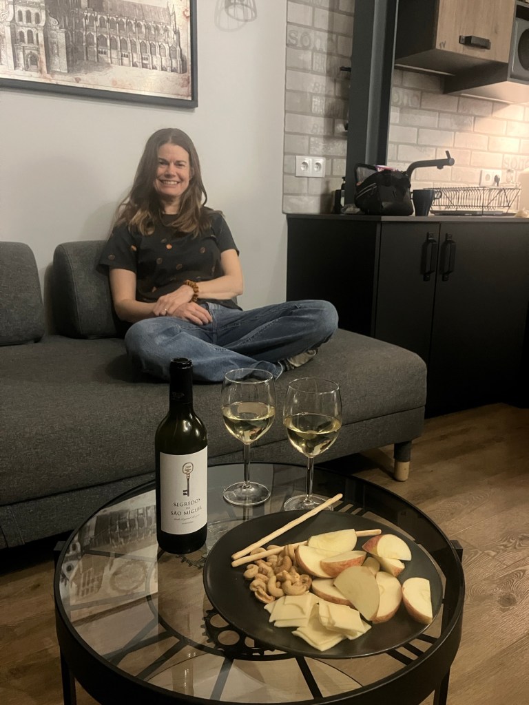 On arrival at the Airport, we had the rather luxurious experience of having a driver waiting for us in the arrivals hall! A ten minute taxi ride delivered us to the door of the apartment, which is very cool. It’s a loft apartment with an ‘industrial’ theme, yet very comfortable! After a glass of local wine to celebrate our arrival, we took a short stroll around the city streets to stretch our legs from a day of travel.
