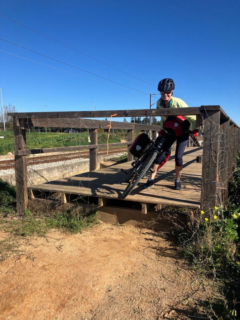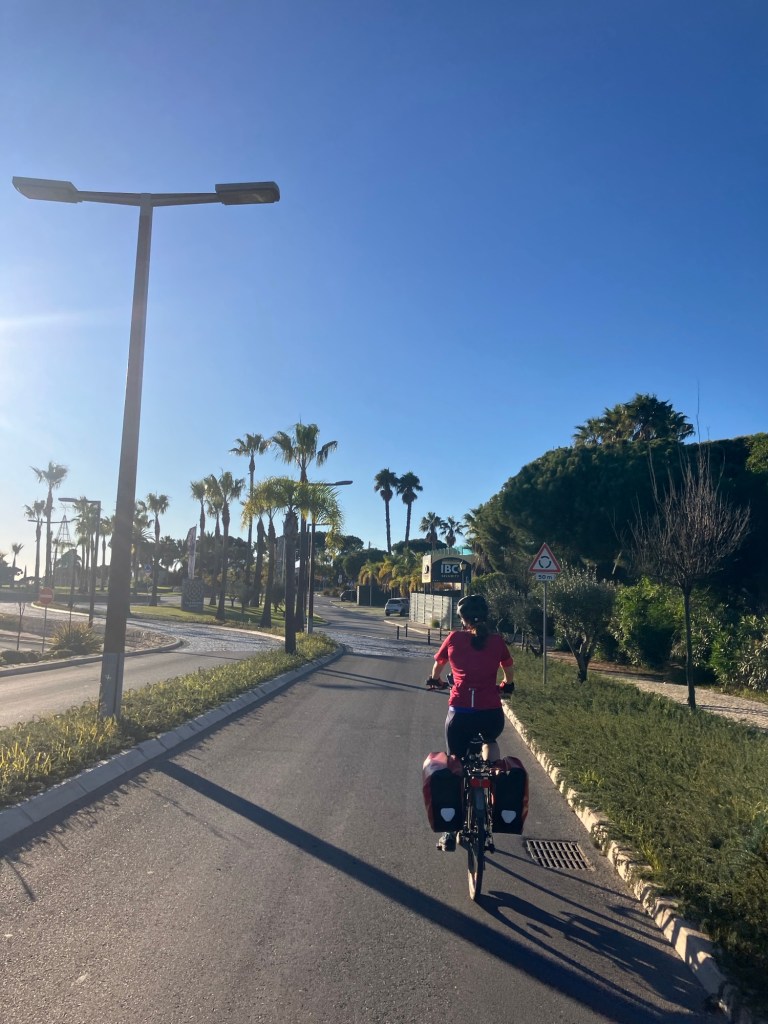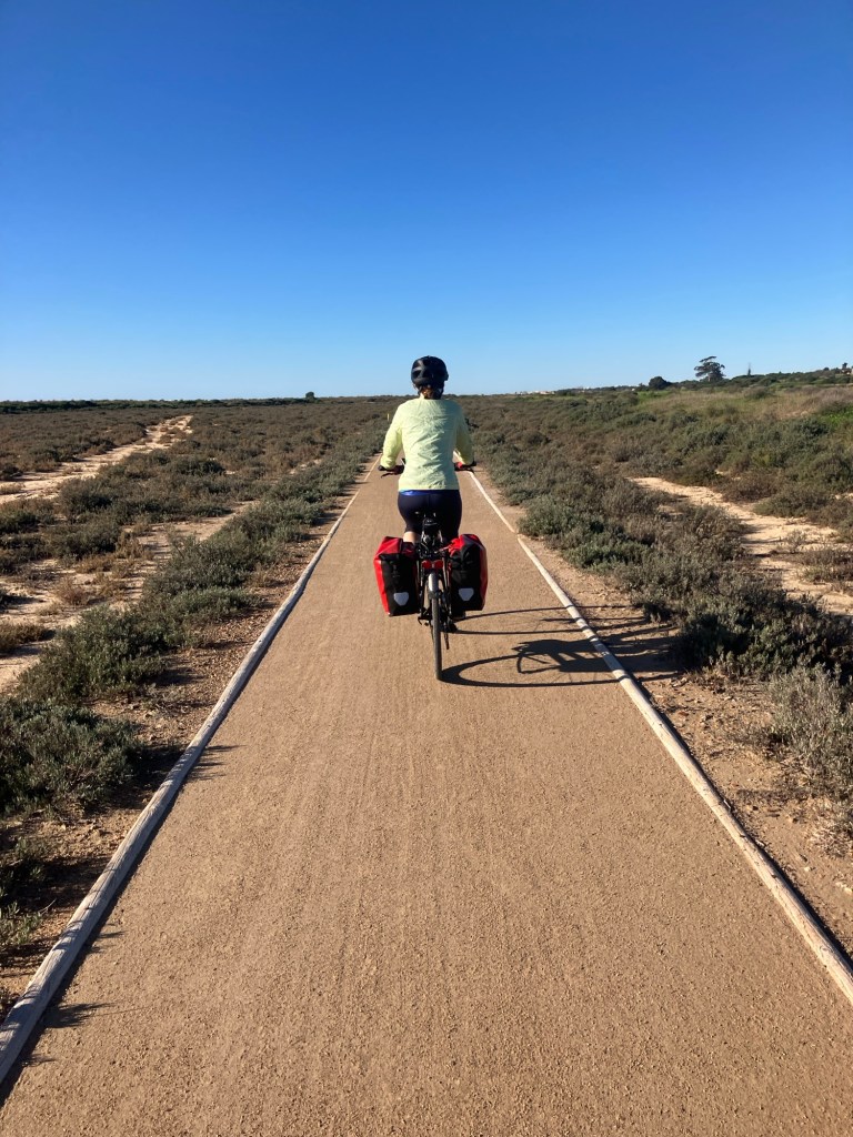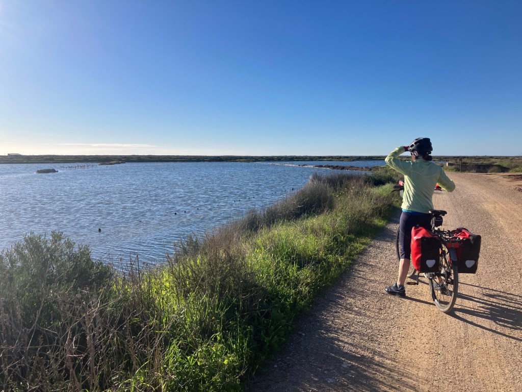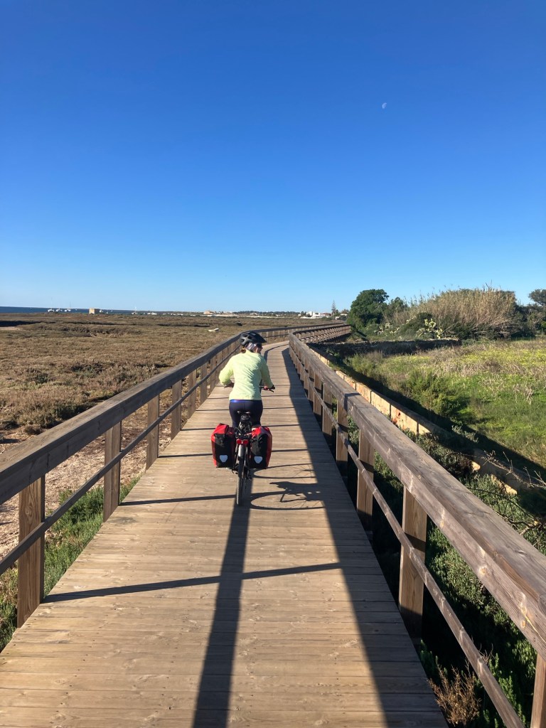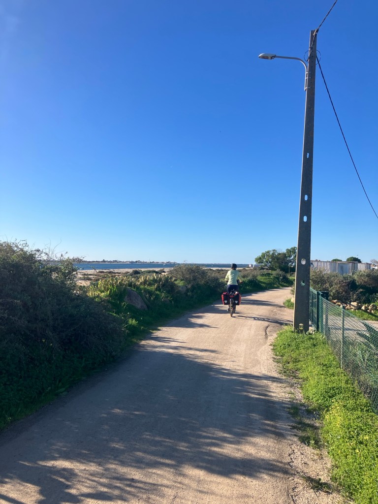 More forest and wetlands lay to the west of Faro and provided some stunning cycle terrain. The trails were deep red in colour and just about okay for our bikes. We felt like we were crossing the desert or African savannah.