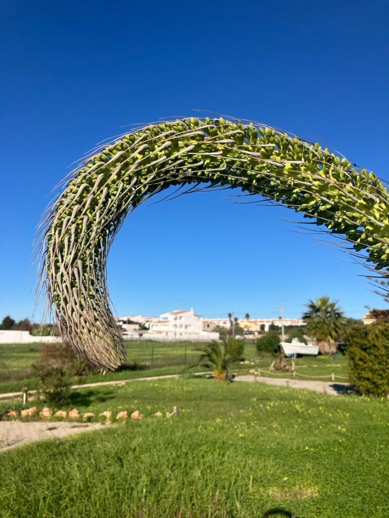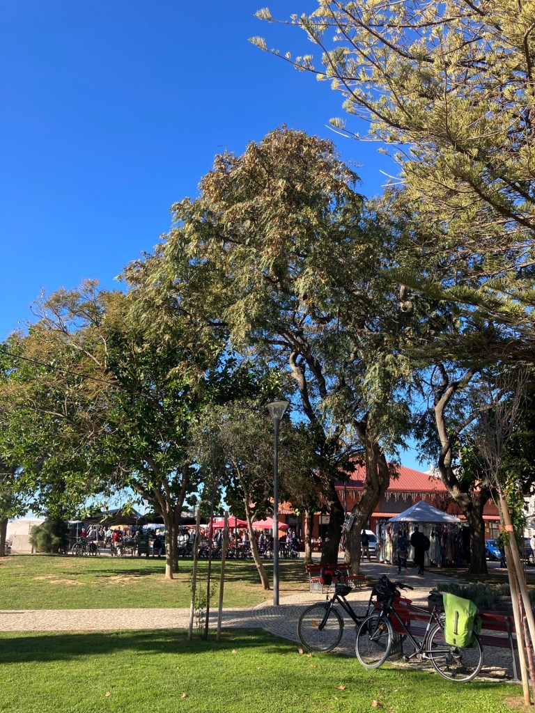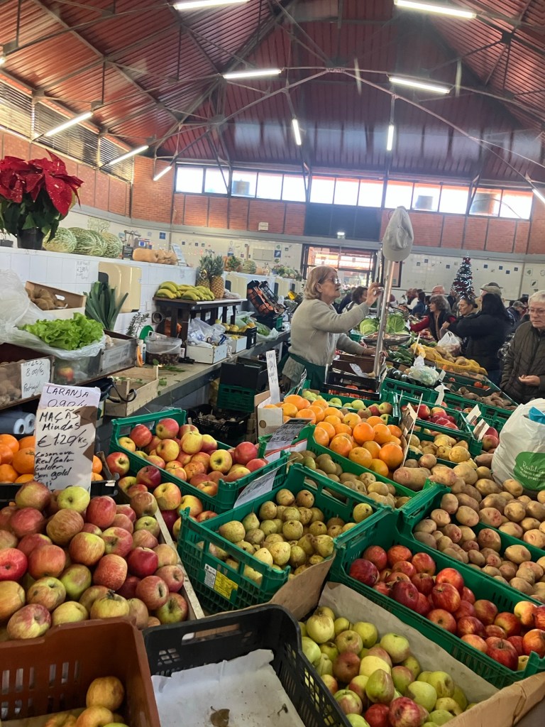 In a town called Olhão, we stopped for an hour or so at the town was full of hussle and the Saturday market was in full flow. You could buy all kinds of fruit, veg, meat, fish and even an octopus! So much to see! We bought some cookies off the local Scout troop who were also singing songs in the market hall, but managed to forget to buy anything for lunch! Just out of the busyness, we found a good seat to have a sandwich, after Clare had fought here way into the local bakers.