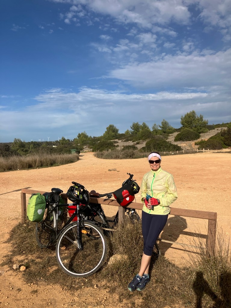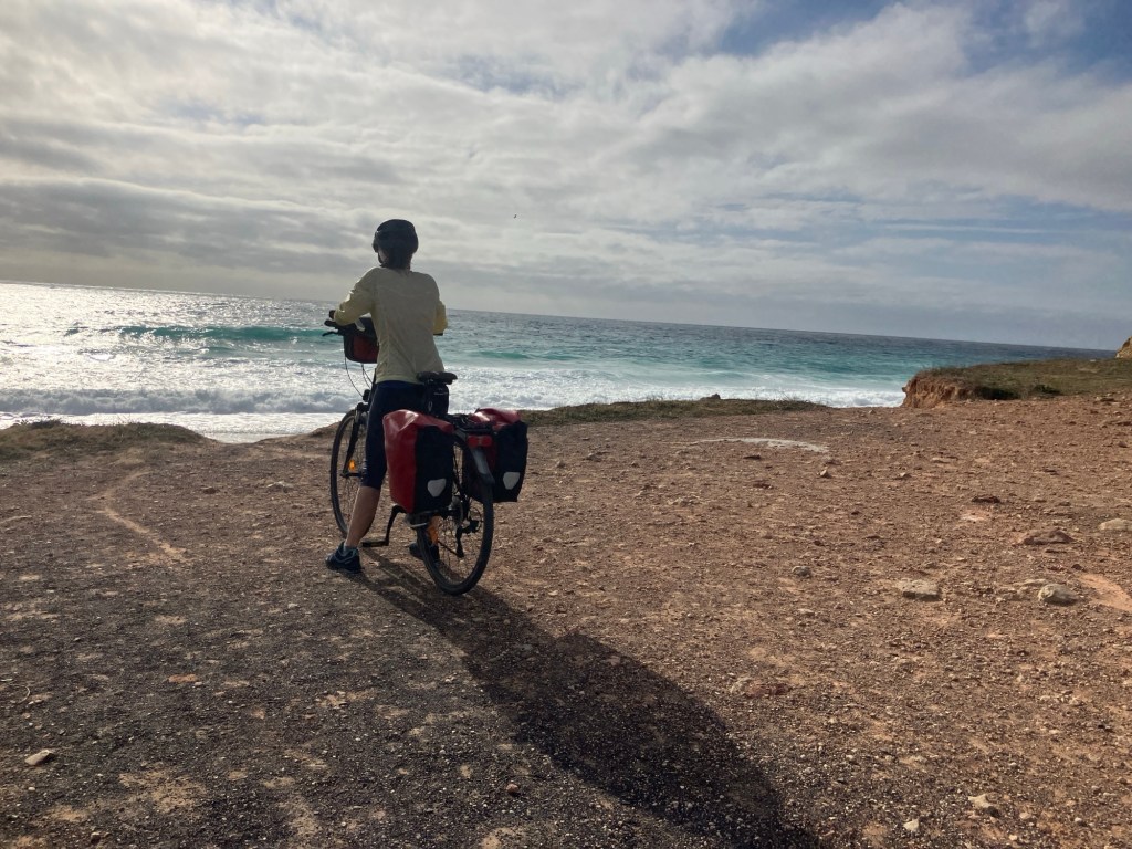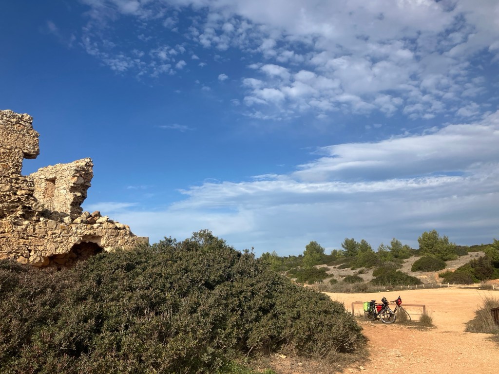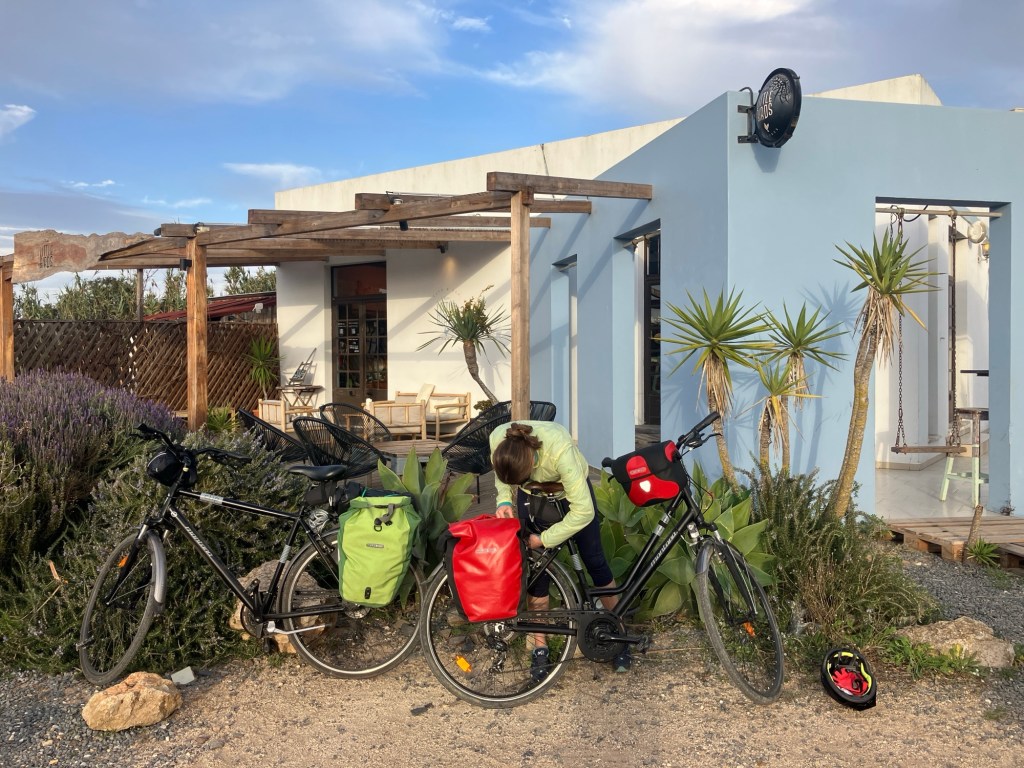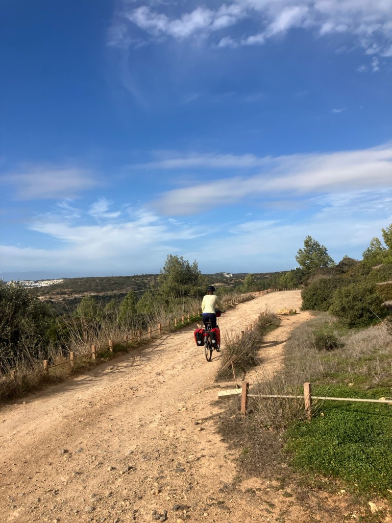 Then, to leave the beach town, we found ourselves heading up another steep road! This time I had to cycle standing up in order to maintain any forward momentum! Soon after, an ‘abandoned’ looking town led us into some empty agricultural land, with gentle rolling hills.