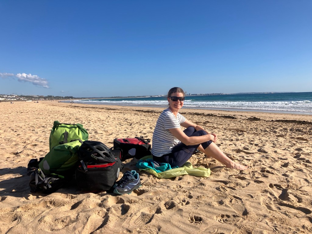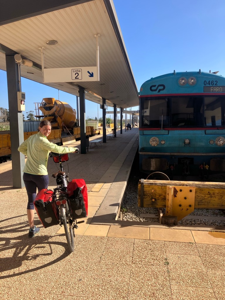 Today’s mission was to get back to Faro and return the bikes. There is a big swimming pool outside where we are staying, which almost tempted us for a morning dip, but we decided that the sea was a better option as it was warmer and probably cleaner!