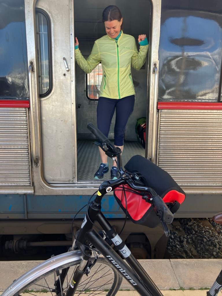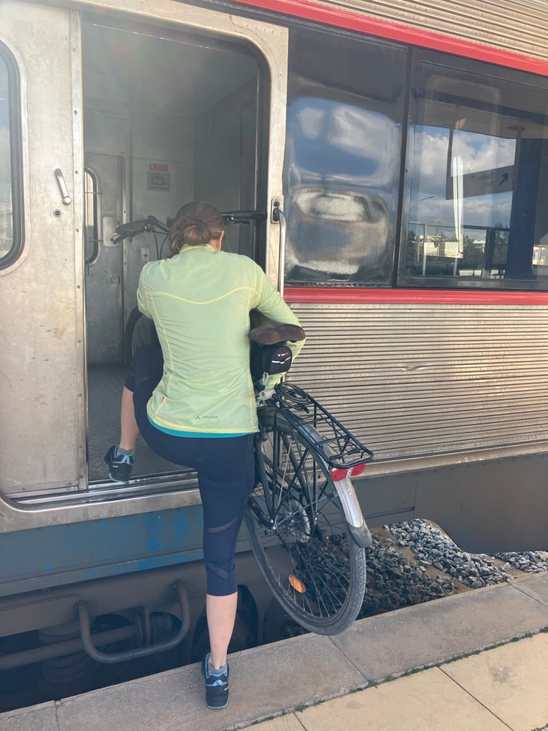 Sometimes trains can be a bit stressful, especially with bikes, but on this occasion we were going from one end of the line to another, so there was plenty of time to load up and no question of if we were on the right train! A bargain €5.00 for the two hour ride (including bikes!).