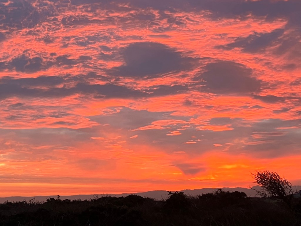 After a night in a bunkhouse, I was up early enough to enjoyed the burning red sun set. The colours washed out in the photos, but it was a really good one to watch.