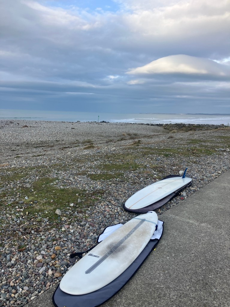 To add to the ambiance, a low flying ‘V’ of ducks flew past just a metre or so above the water, then while waiting for the next set of waves, we watched a pod of porpoise go past further out to sea, with black fins arching gracefully as they passed us by.