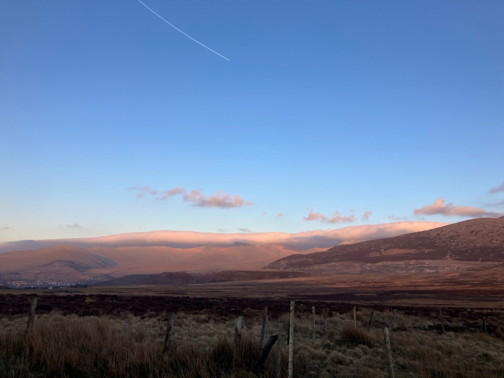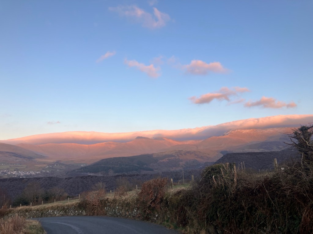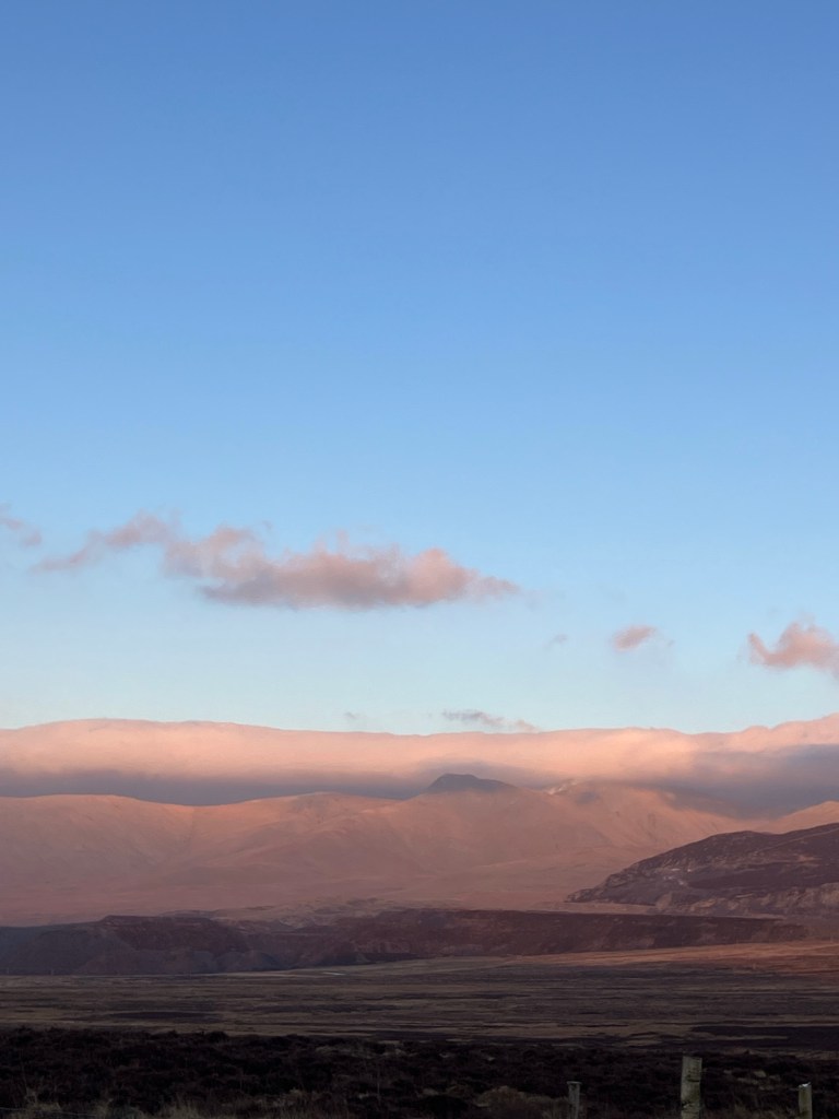 Later in the day after checking through our ski kit in preperation for ‘Arctic April’, the skies cleared a bit and there was a real glow of colour on the clouds that were layering on top of the mountains. The photos couldn’t quite capture it though. These were my best efforts…