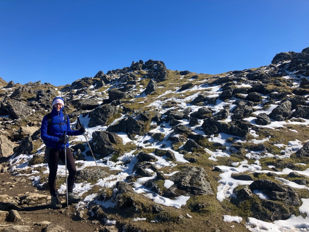 The ground was well frozen and there was a smattering of remaining snow, but not enough to need any crampons or micro spikes. Any exposed flesh really felt the wind chill, which was forecast to feel like minus ten, and certainly did.