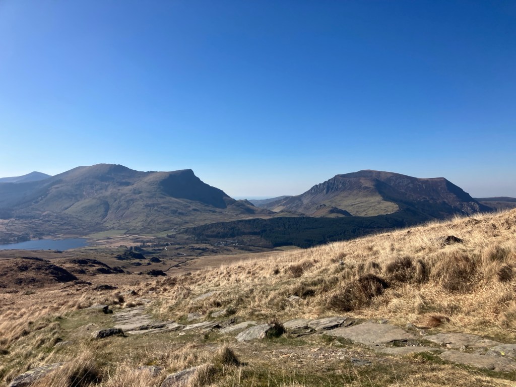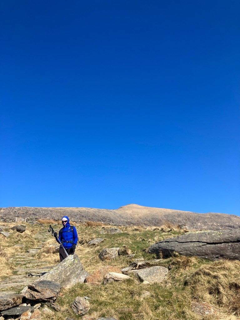 Another absolute belter of a mountain day, but nowhere near as warm as the blue skies might suggest. With our Norwegian Ski Tour only a month away, we’ve been getting some ‘uphill training’ in over the past few weeks. Neither of us had been up the South Ridge of Snowdon in years, so we travelled around to Rydd Ddu to make sure we were on the sunny aspects and with some protection from the bitterly cold easterlies.