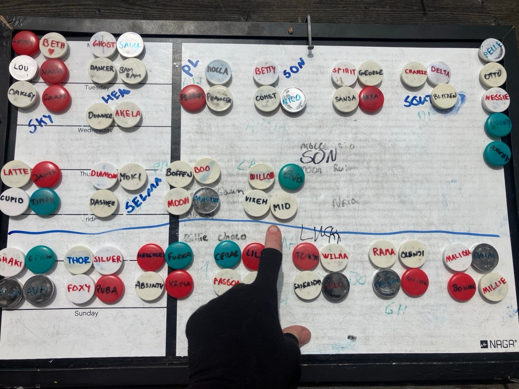 With the sleds packed we were all assigned our dogs for the journey. We had to get to know them and harness them up. I’ve got a huge beast called Elvis in my team of four.