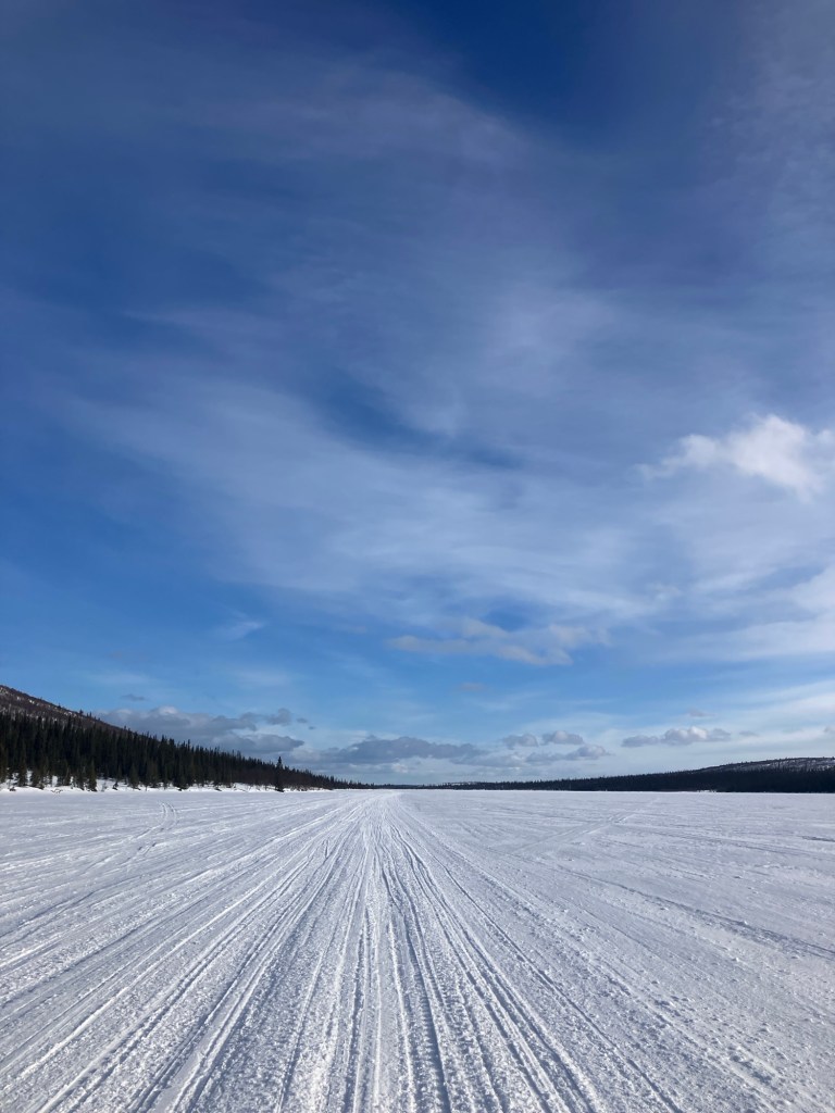 We crossed a 15km lake where the wind chill was severe. Until then it had felt quite ‘warm’ at +1°C.