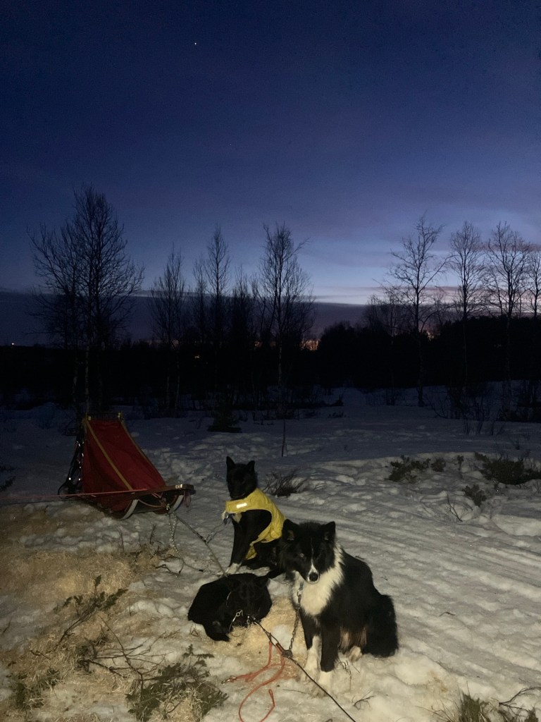 We reached a small village called Killinge. It was almost dark and we’d been on the move for nearly five hours without really stopping for more than a few moments to sort the dogs. They are sleeping outside tonight.