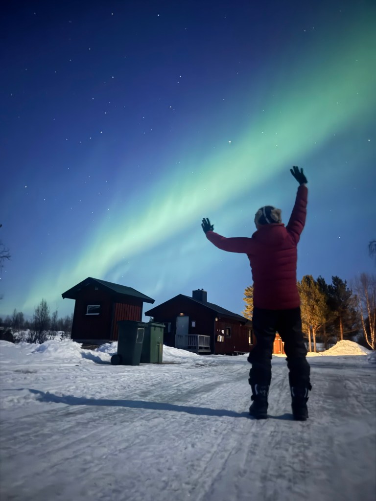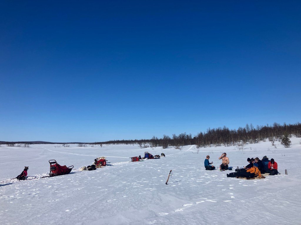 We woke to a cold crisp morning. The cabins we are in are traditional Sami huts and were lived in by families until 2023. There is a fire and stove in the centre and beds around the edge. A well in located in a separate cabin and a long drop toilet at the other end of the row.