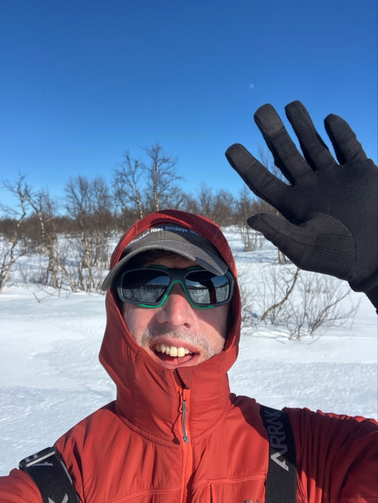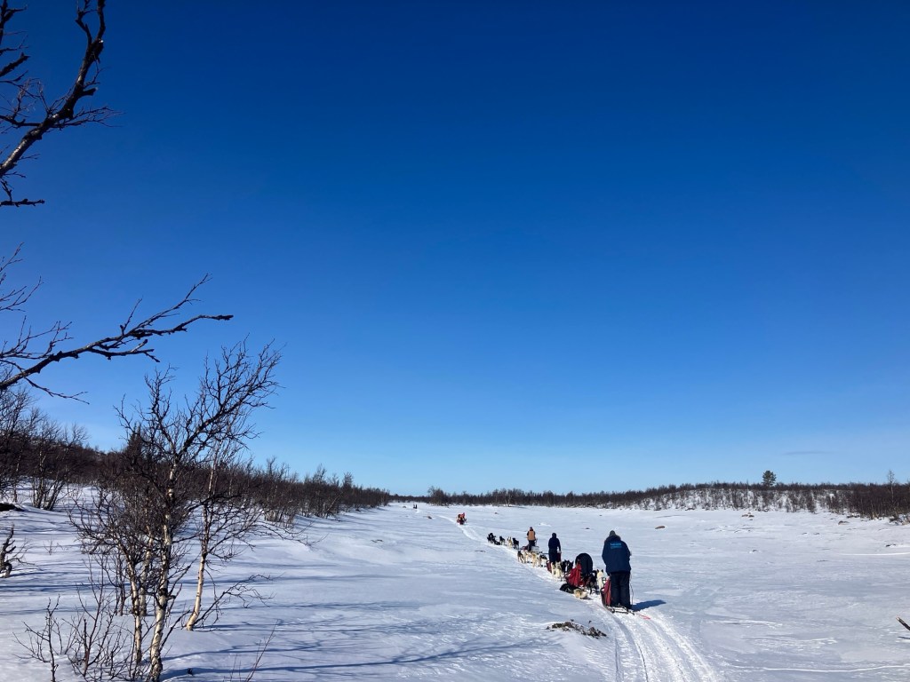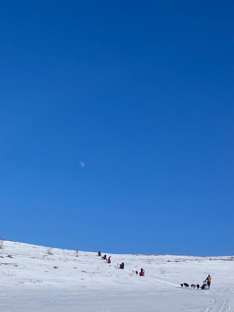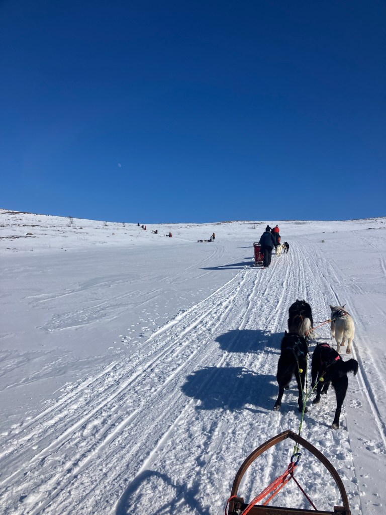 I’m at the back of the line, so at the top of the climb, had un-interrupted views out across towards Kebnekaise – Sweden’s highest peak, that I had previously sledded around on an expedition in 2018.