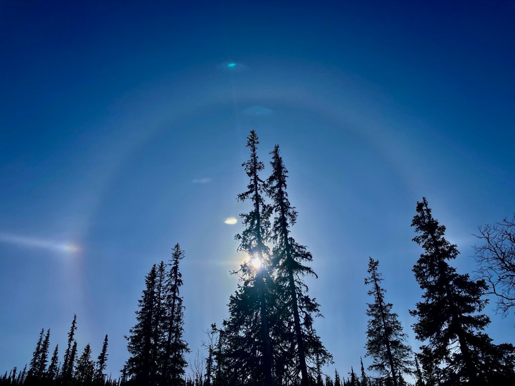 There was a fabulous halo around the sun (known as a Sundog). Amazing to see the rainbows it created, but concerning to know that these usually mean poor weather is on the way!