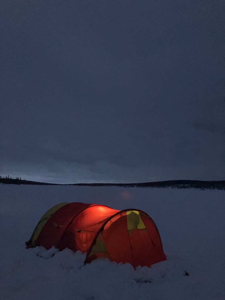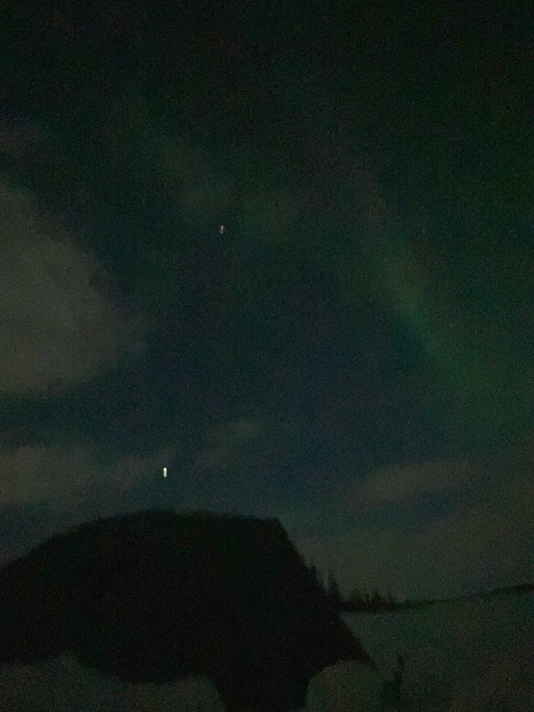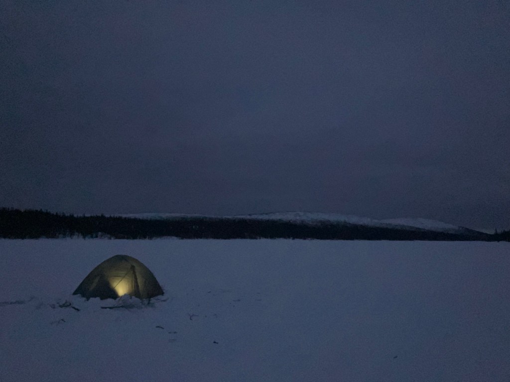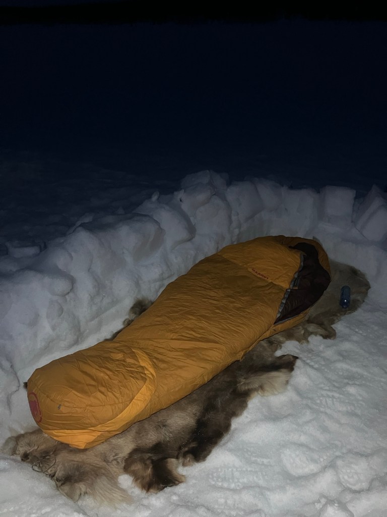 I bedded down on a reindeer skin for a camp mat and watched the northern lights as I drifted off to sleep. Pretty cool.