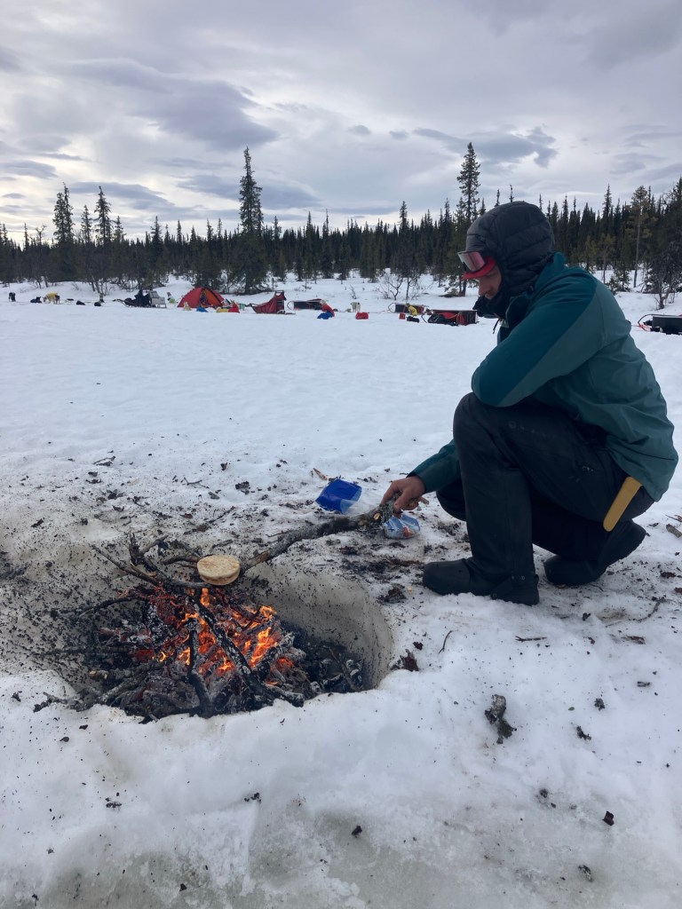 Then finally we reached the deserted village and our home for the night. The guys are in one hut, and Aled and I have our own one, which has a little stove. We’ve got it going now as the wind howls around the building. Toasty.