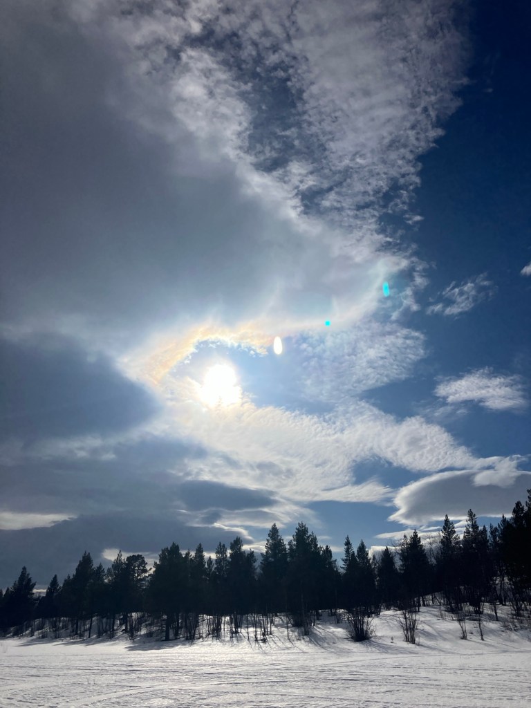 To get to the Sami Cabins at Killinge, we returned along the frozen river, marvelling at the skies.
