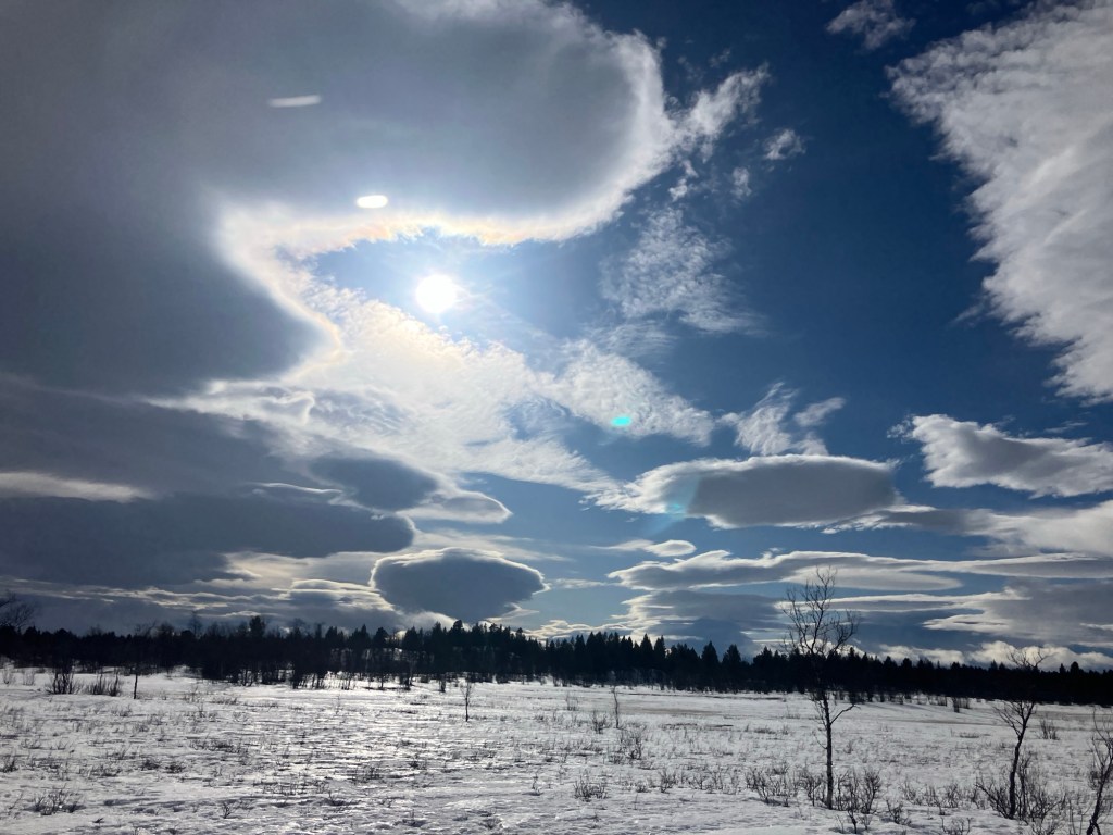 In the afternoon the sun came out and gave the most incredible sky views. The high winds at altitude had created beautiful alto cirrus and smoothed them off into ‘lenticular’ saucers.