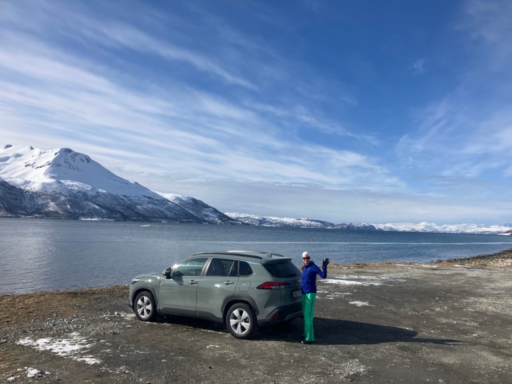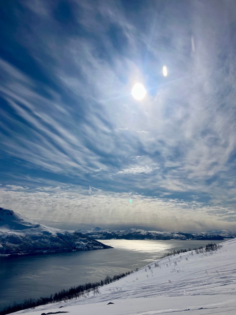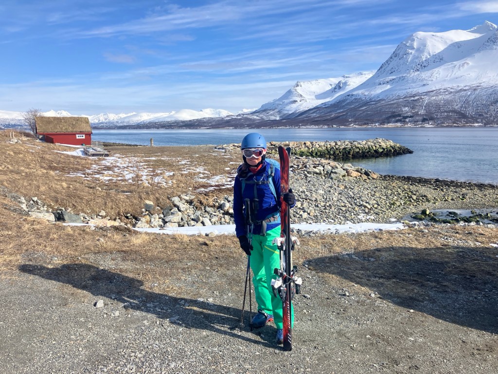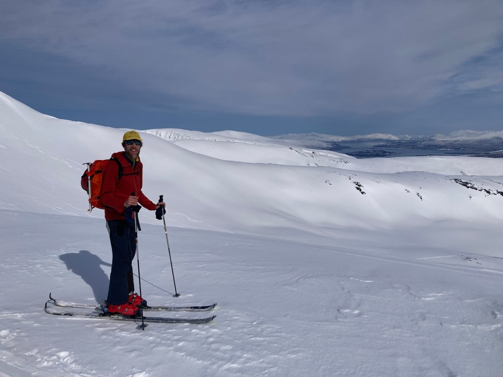 For a ‘change of skyline’, we drove around the fjord this morning to climb a peak called Gråtinden. It was a beautiful thirty minute drive, during which we saw only a handful of other vehicles. The scenery around here is just incredible. Everywhere you look there another even better vista. And to be able to park up by the water, lift your skis out of the boot of the car and climb a peak is even better than I had imagined.
