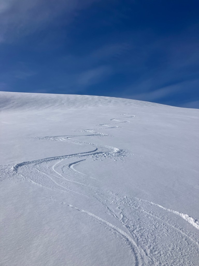 The power snow wasn’t quite as soft as yesterday’s fresh stuff, but it was still pretty fantastic. And the backdrop…. Wow…