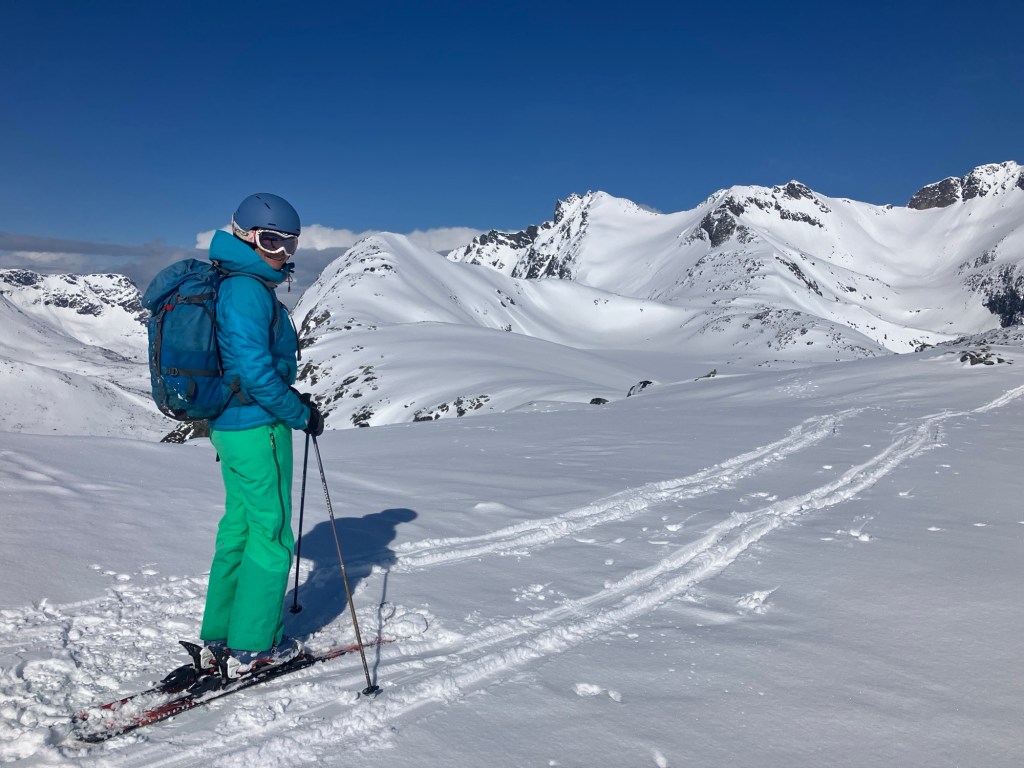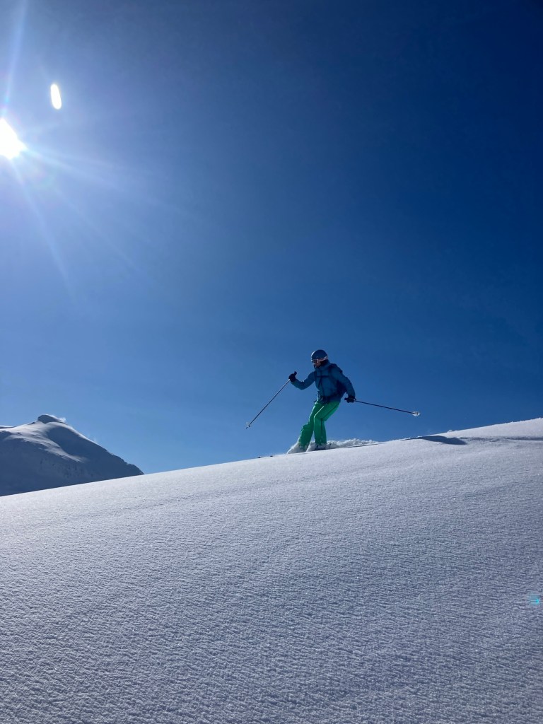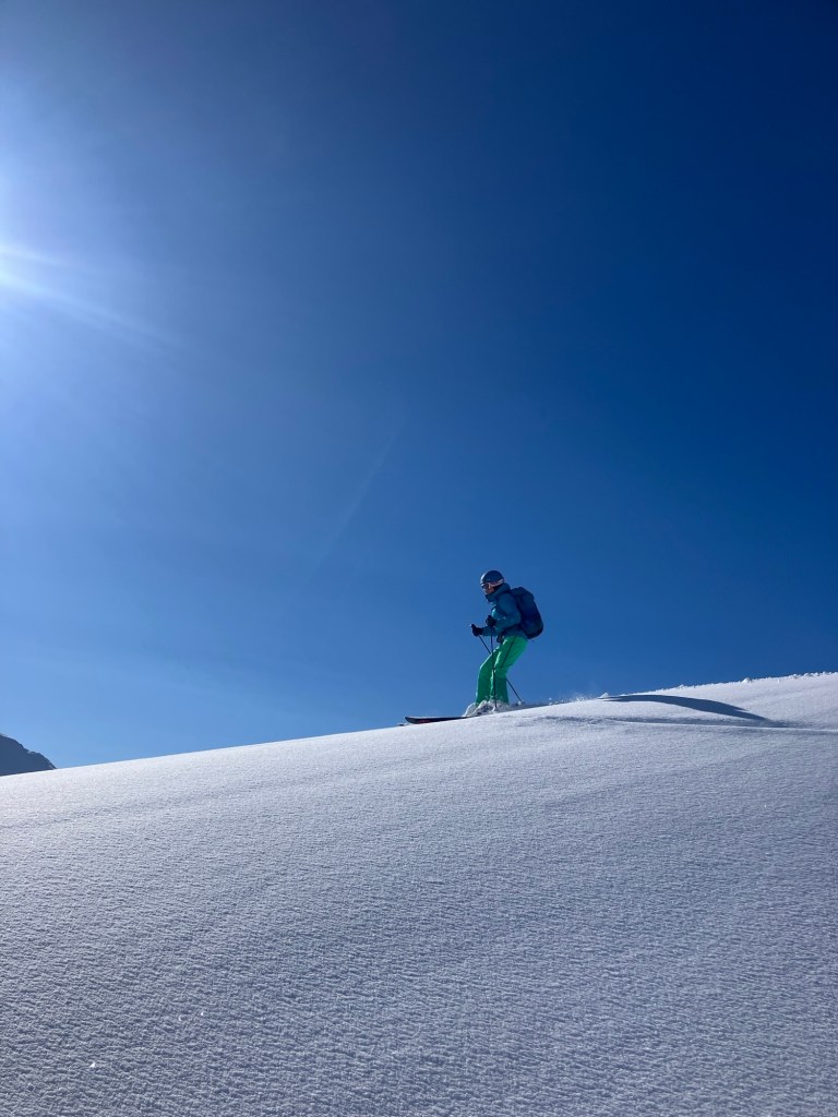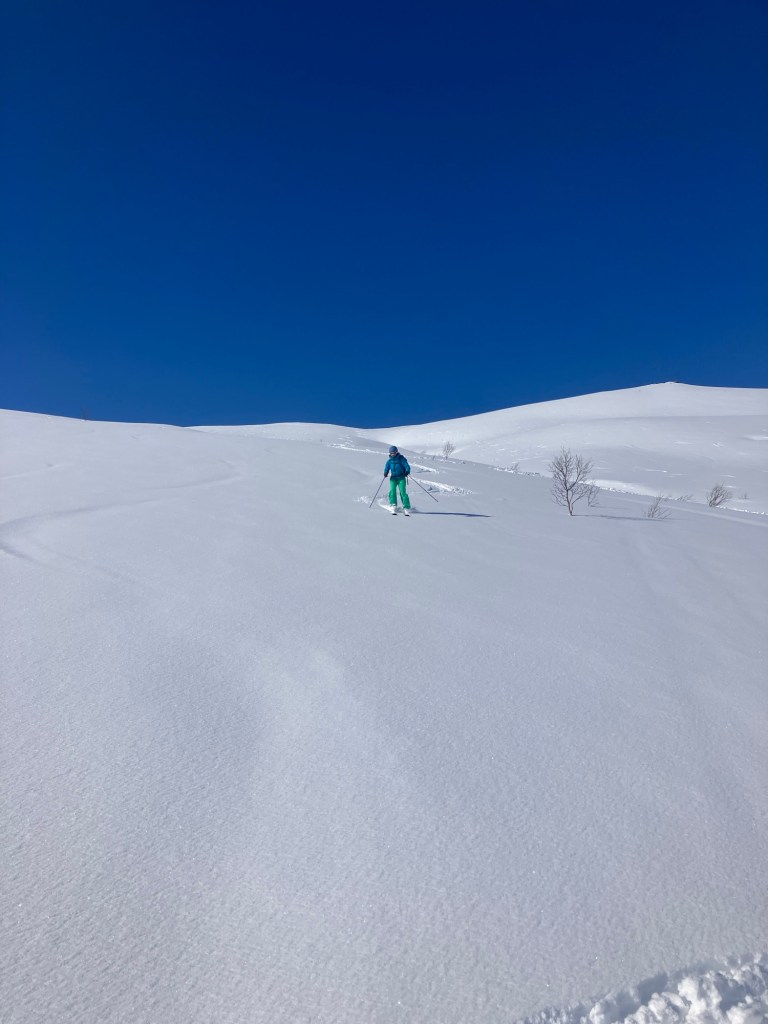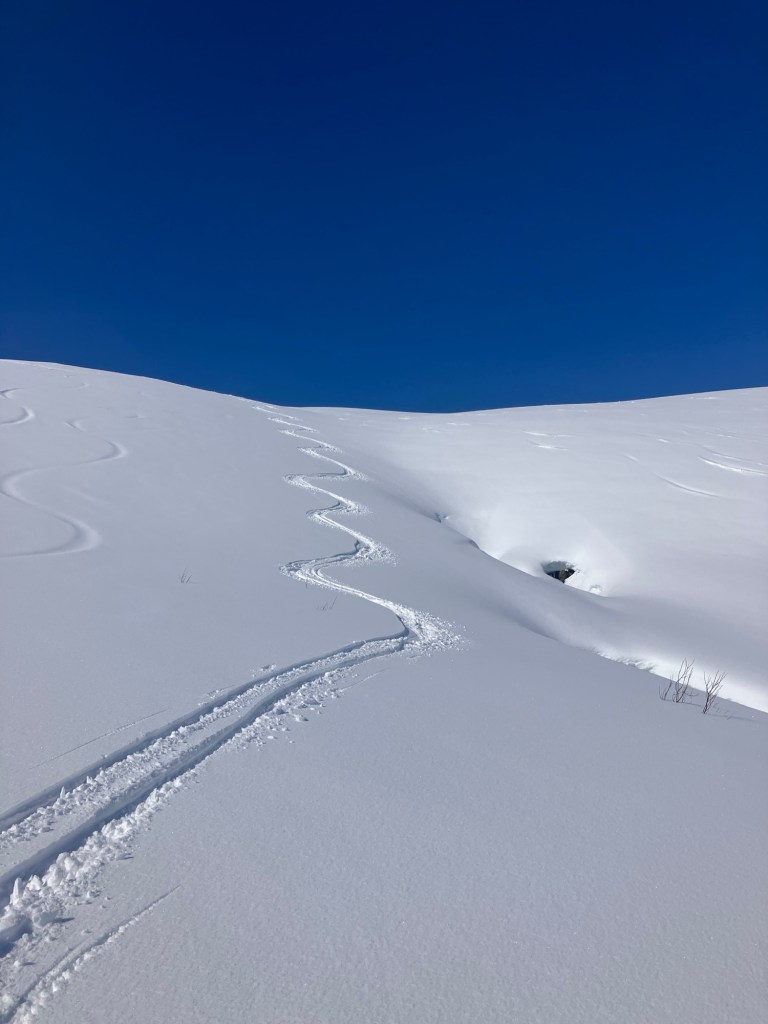 As hoped, the ski down was one of our best! We revelled in putting in some fresh tracks as we glided easily and happily back to the valley by ourselves.