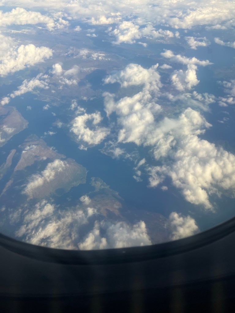 The flight was very scenic and we had a row of seats to ourselves to stretch out in. We were one row behind business class, but it felt pretty luxurious anyway on our BA flight.