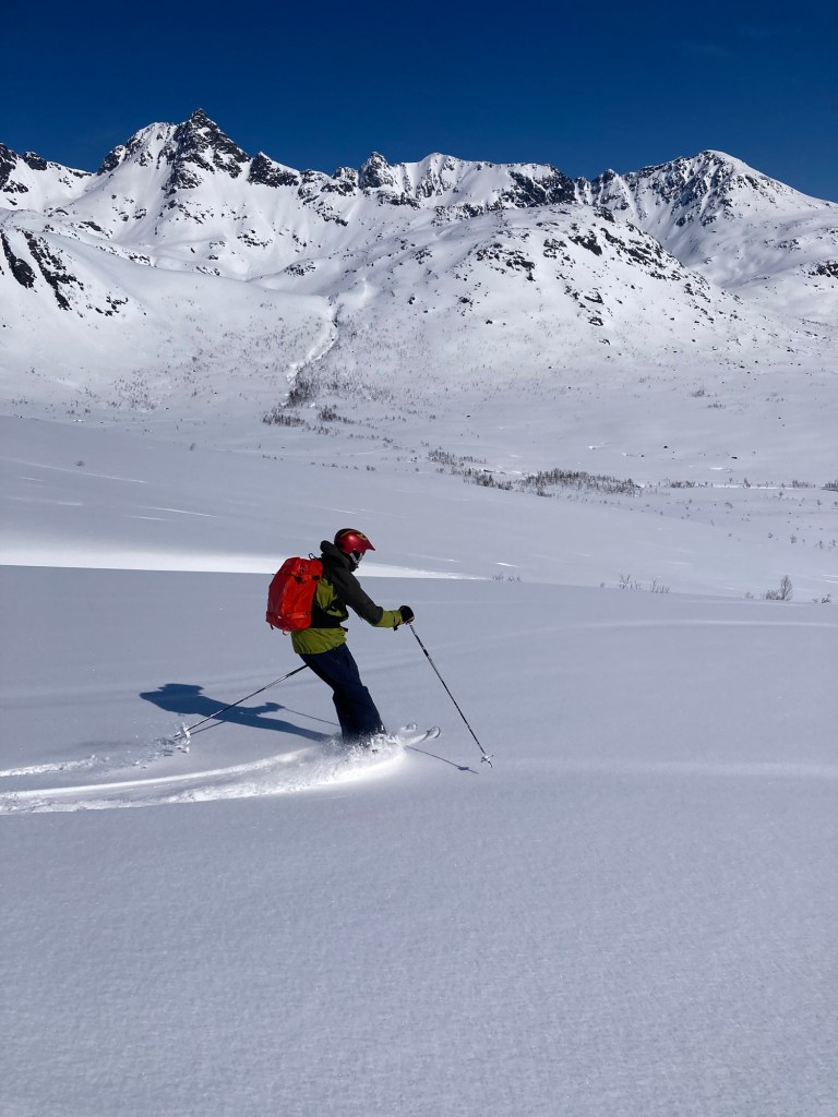 A full value day today that started on an island near Tromso, Norway and finished back at The Cottage in North Wales, via a mountain summit and some sensational powder skiing!