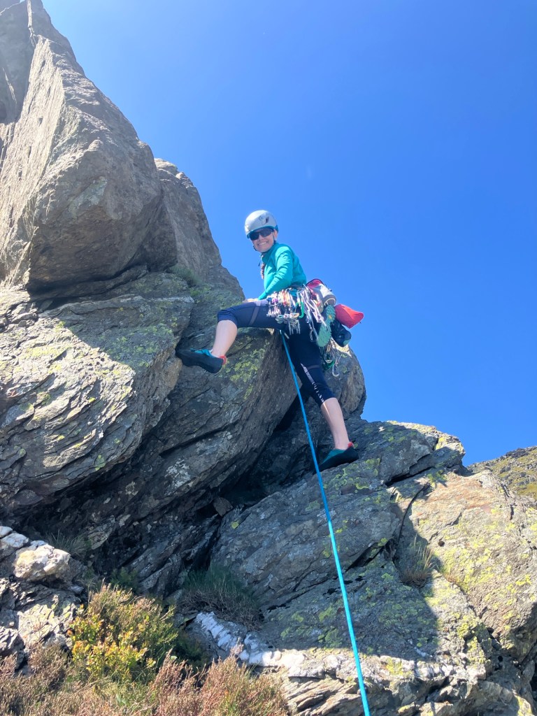We climbed one of the easier rocky ridges, which it turned out, we’d not done before, then descended a big gully on the left of the crag back to the bags, for lunch. A brief bit of unexpected email admin on my phone almost de-railed the vibe, but once that was dealt with, we continued up another route which felt somewhat harder than advertised!
