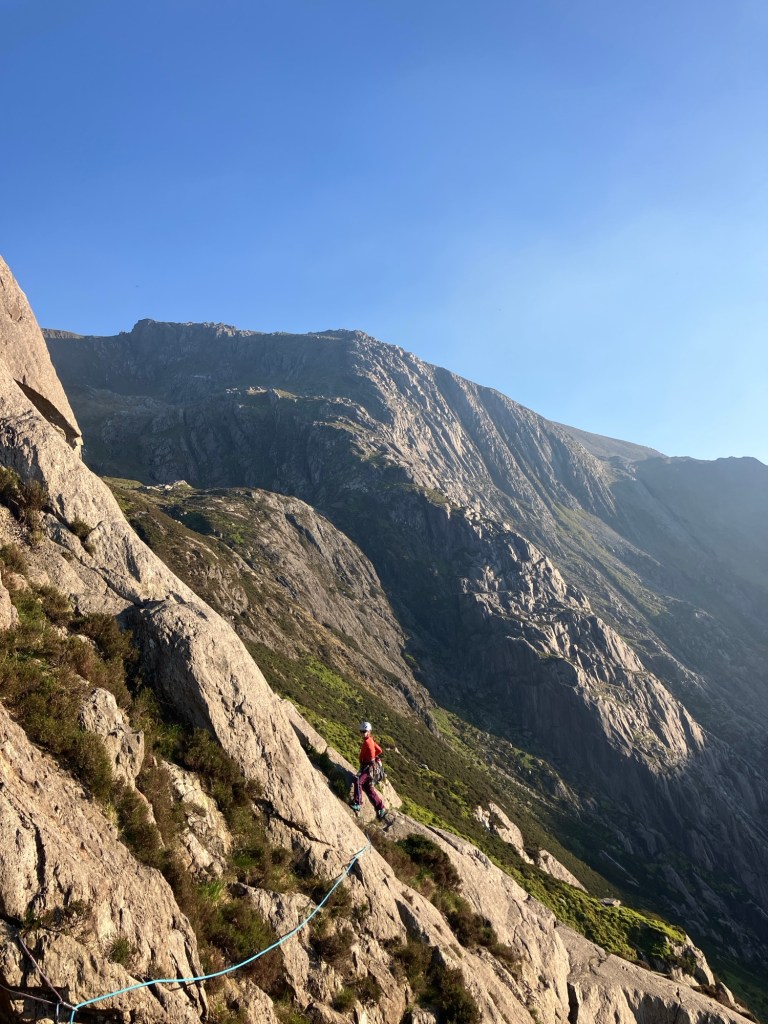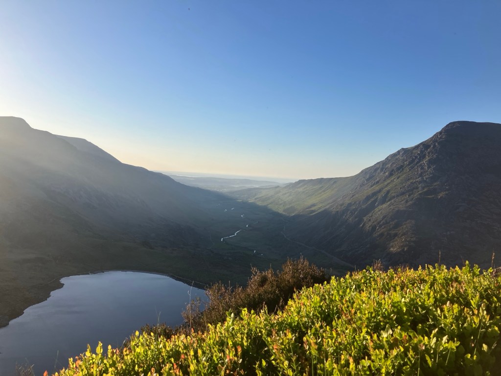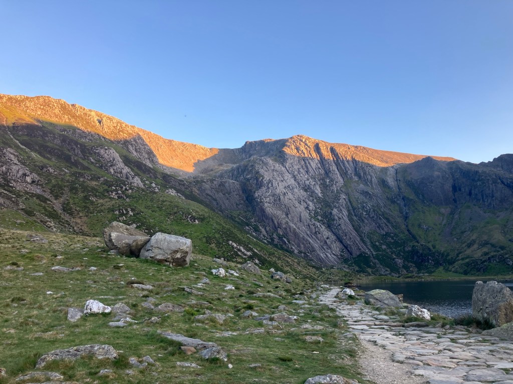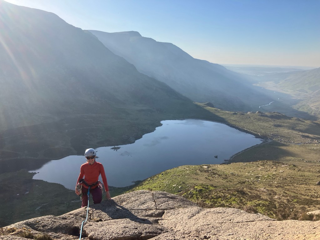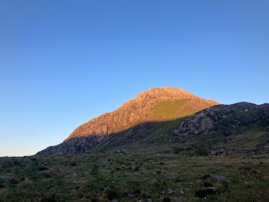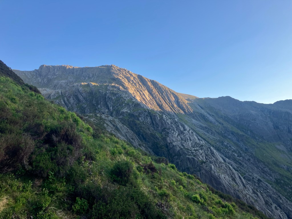 As we climbed, the sun was tracking lower across the summit of Y Garn on the other side of the Cwm. We managed to stay fast enough to stay up in the warmth though.