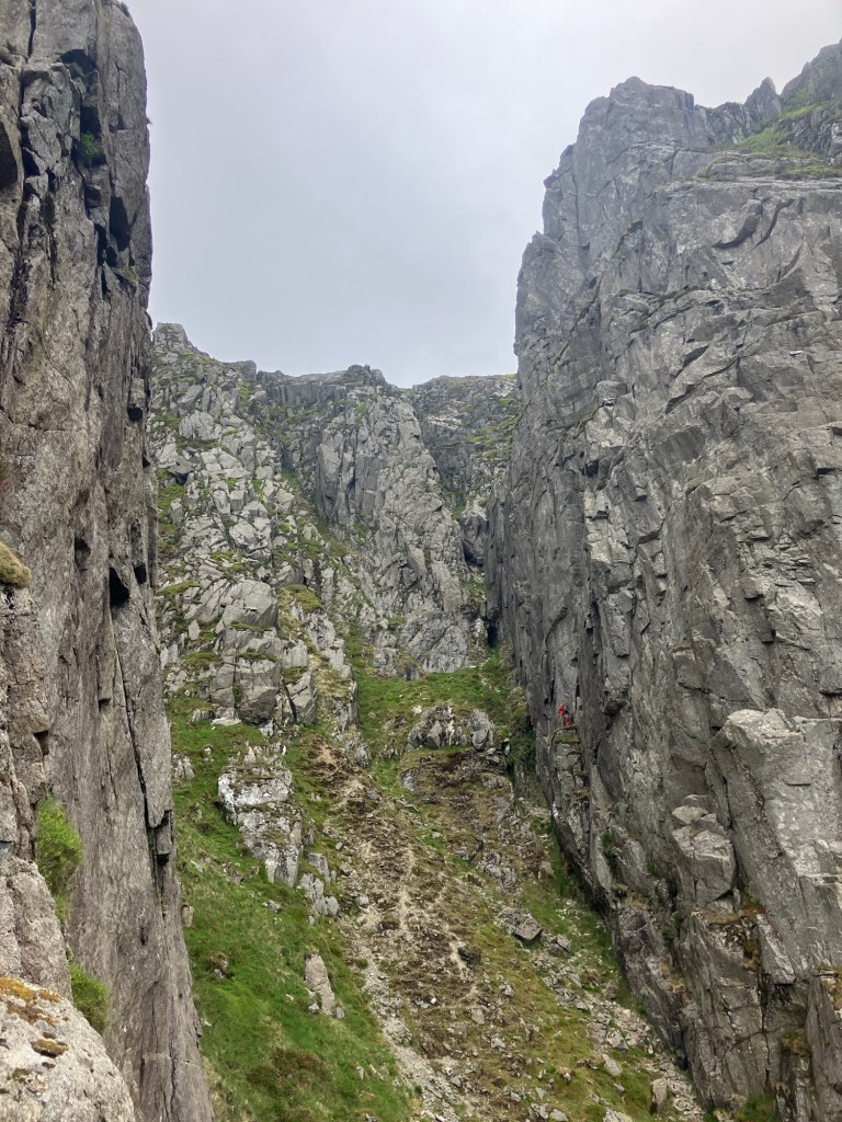 We unexpectedly had a few more hours free than we’d planned for today, so took the opportunity to hike up and over to Craig yr Ysfa to climb the long classic mountaineering route of Amphitheatre Buttress.