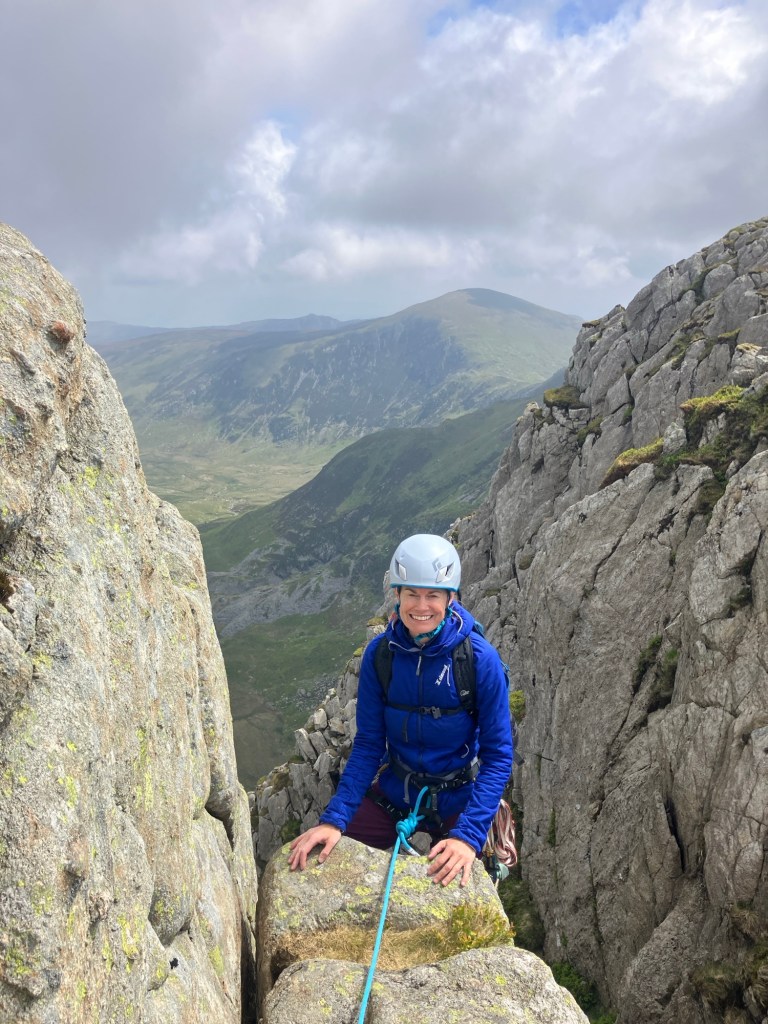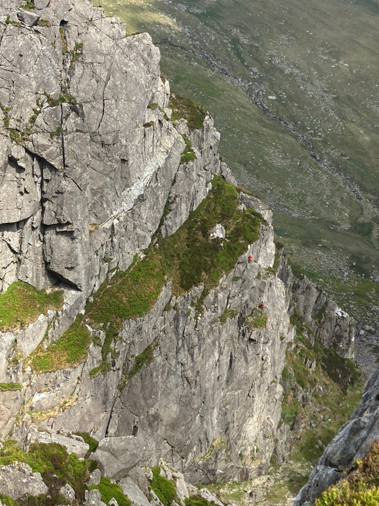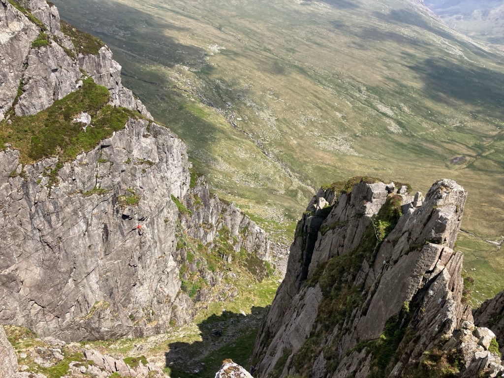 Zoom in on the photo below and you can just see me waving, from half way along the ridge! It was taken by our friends climbing on the far side and sent to me later…